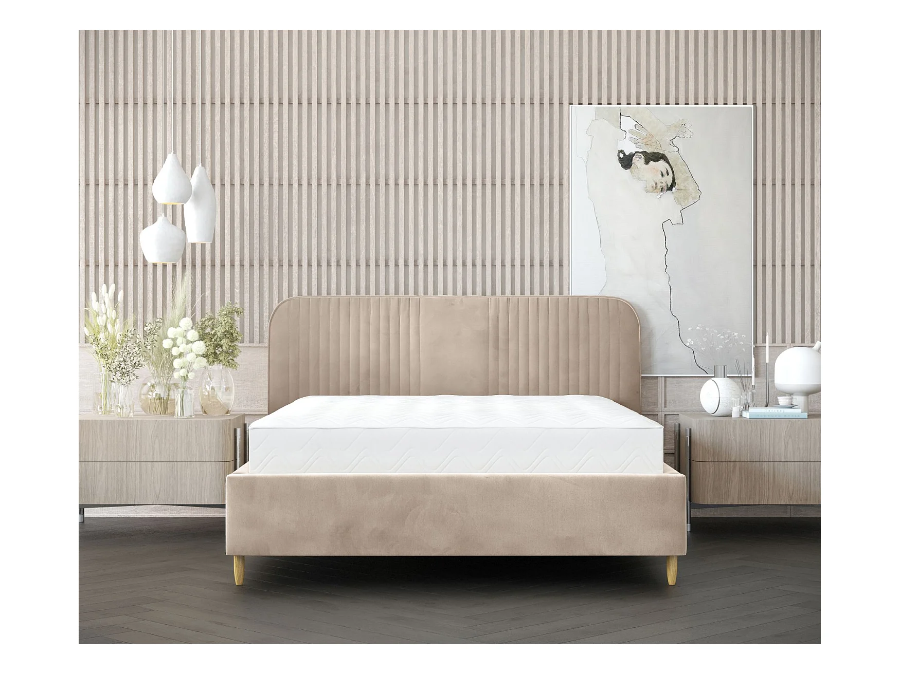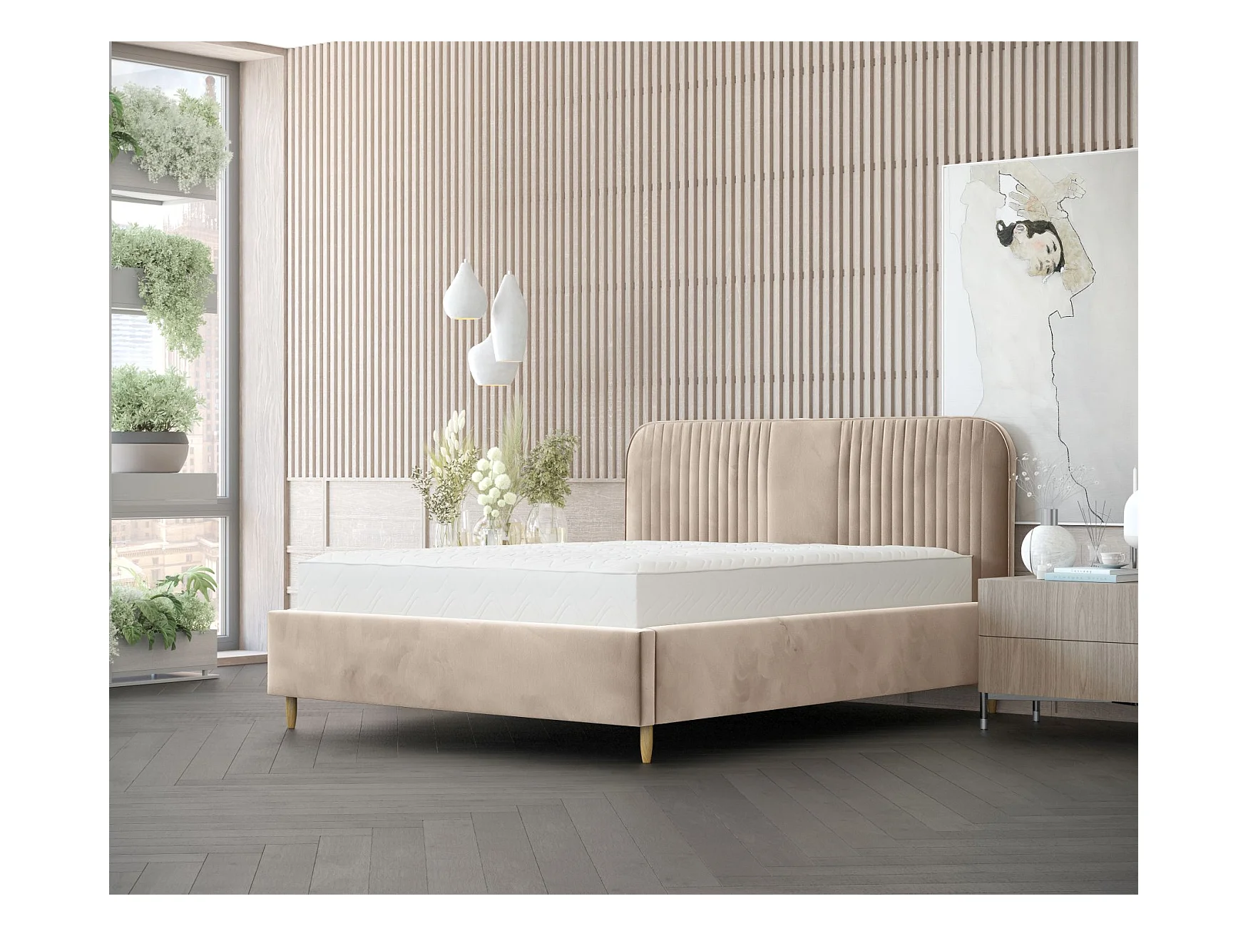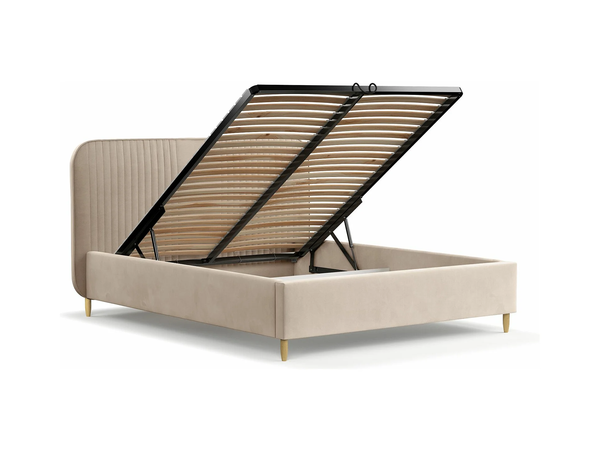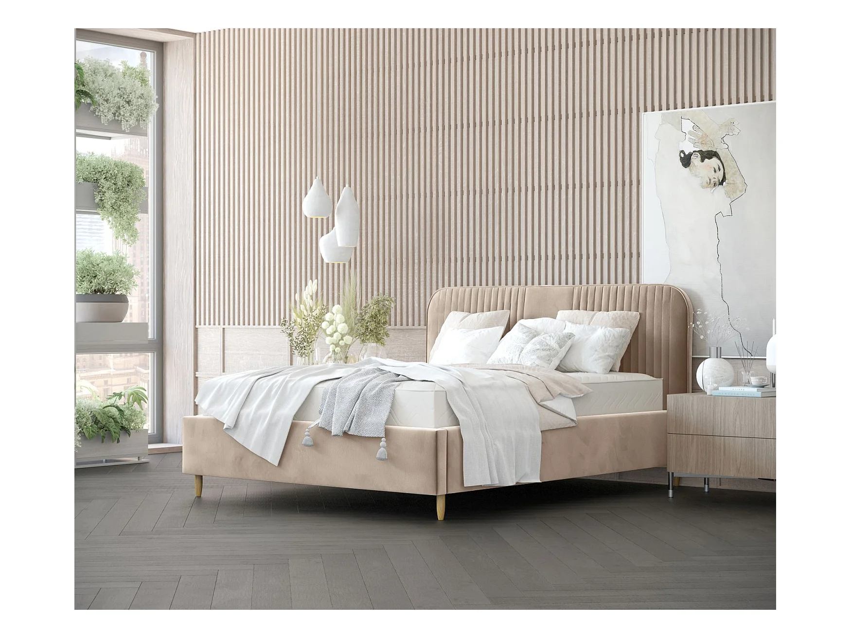Lit coffre Livy - 140 x 200 cm - velours - beige