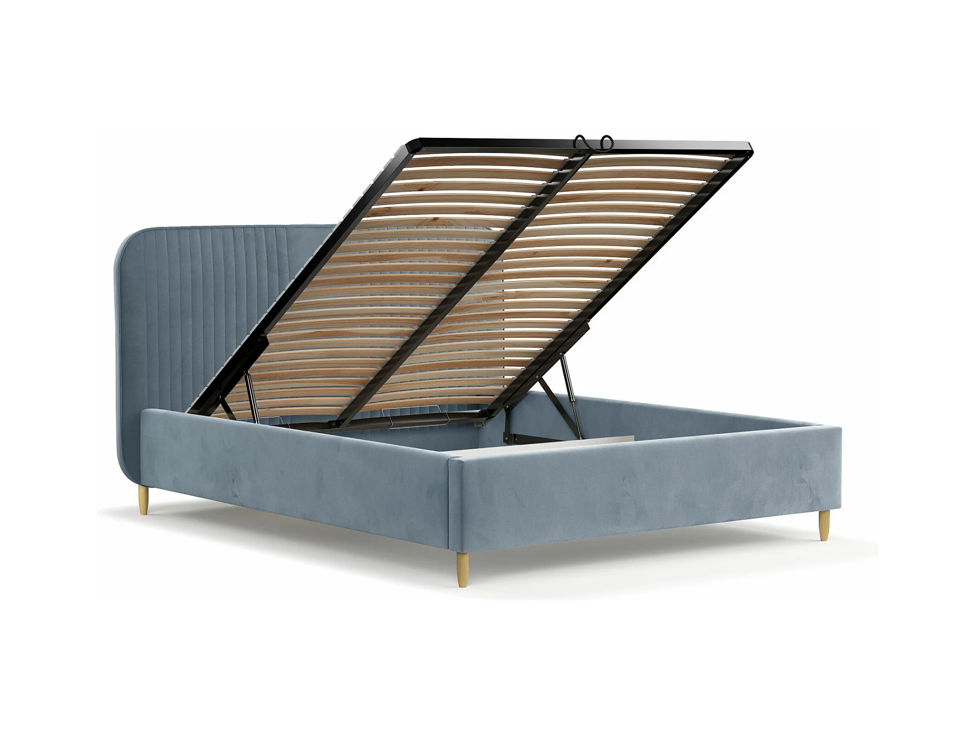 Lit coffre Livy - 180 x 200 cm - velours - bleu gris