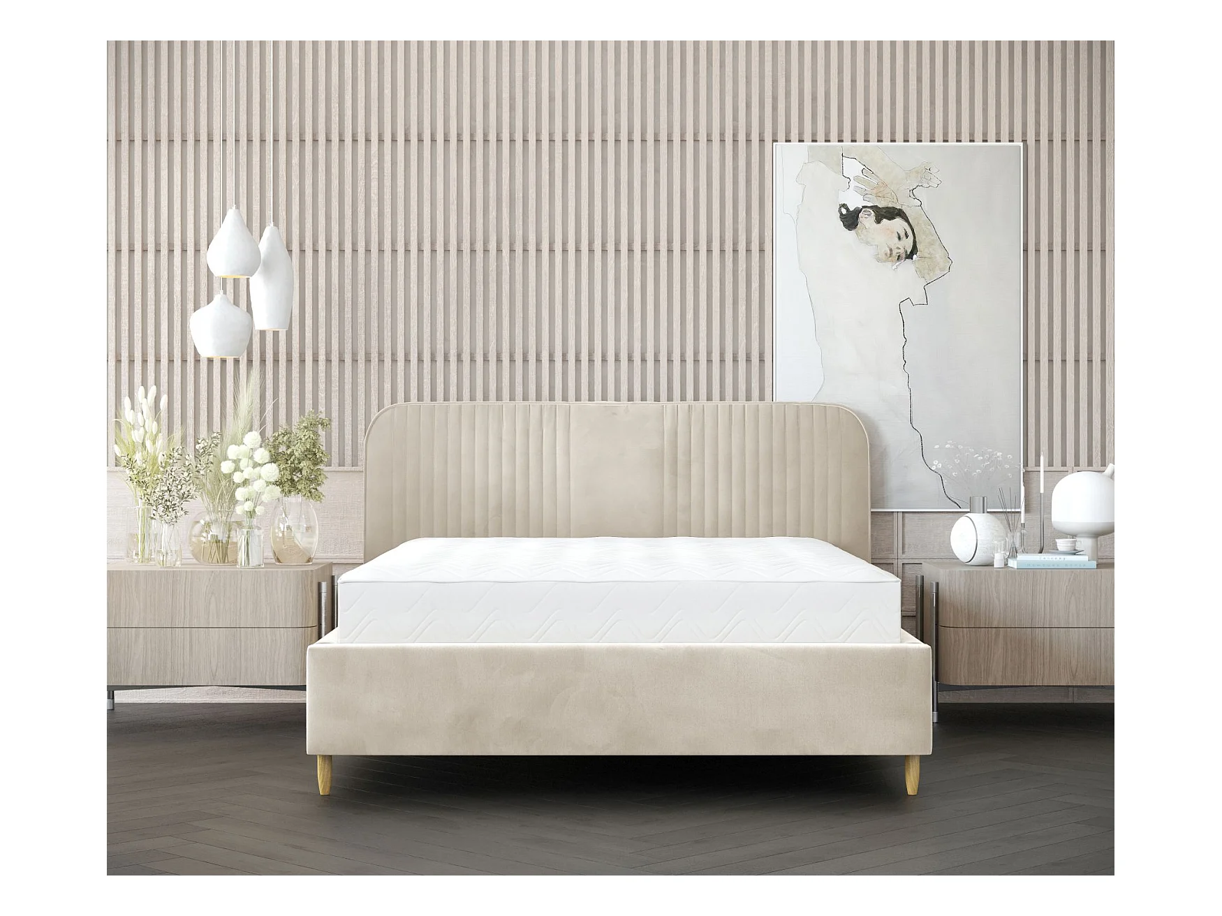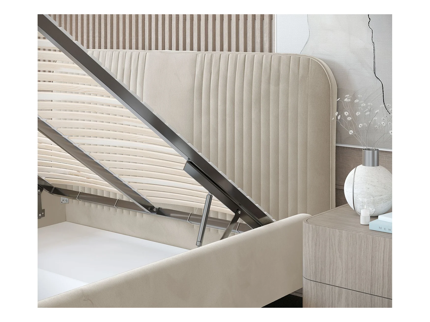 Lit coffre en tissu beige