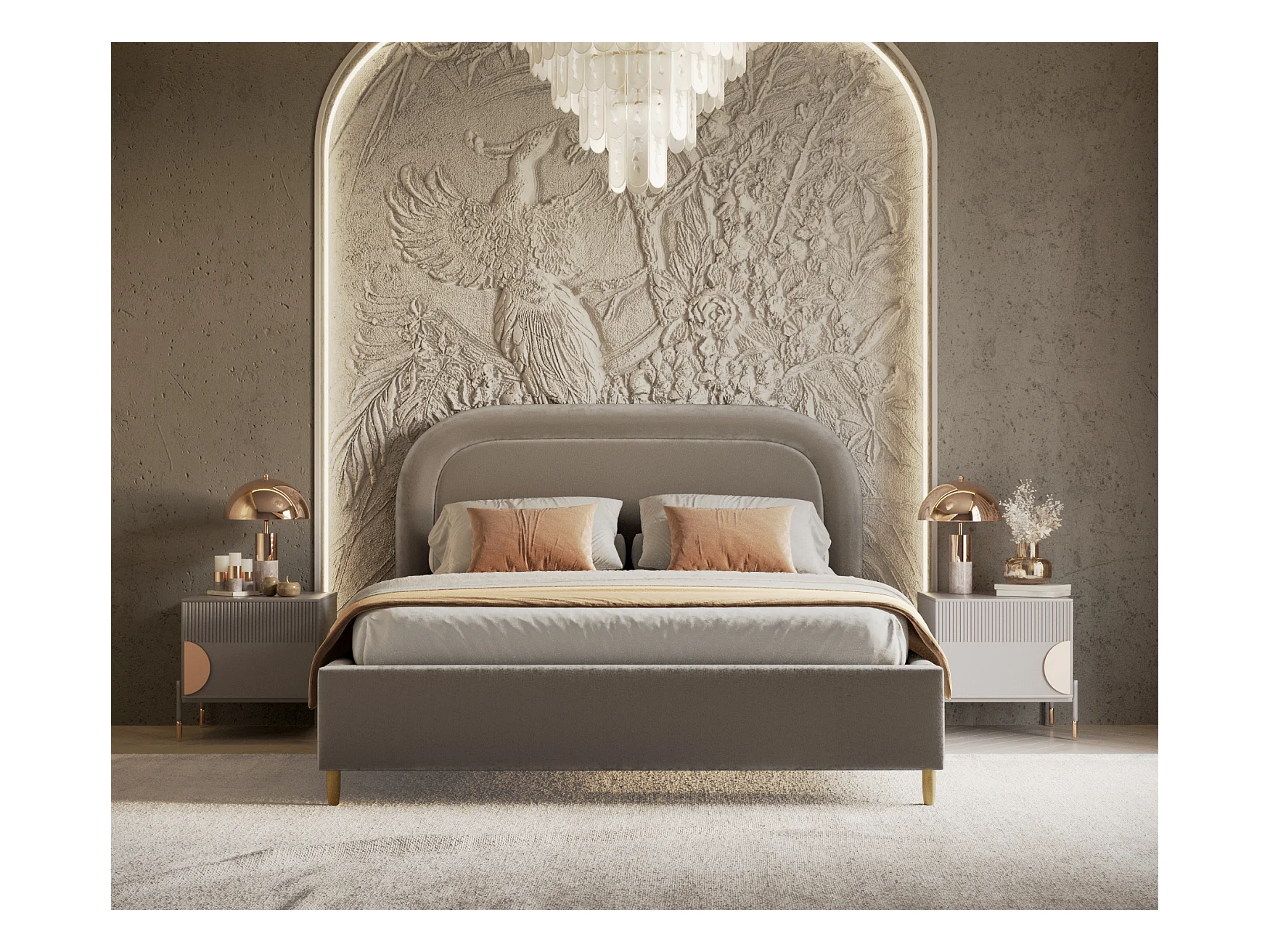 Lit coffre Mija - 180 x 200 cm - chenille - beige
