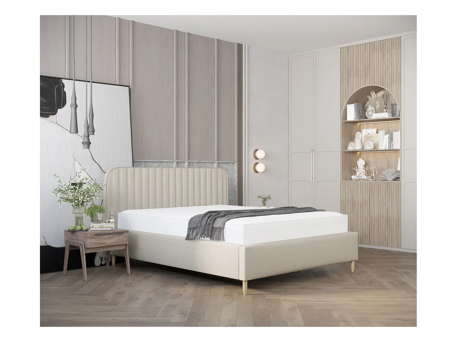 Lit coffre Noto - 140 x 200 cm - toile tissée - beige