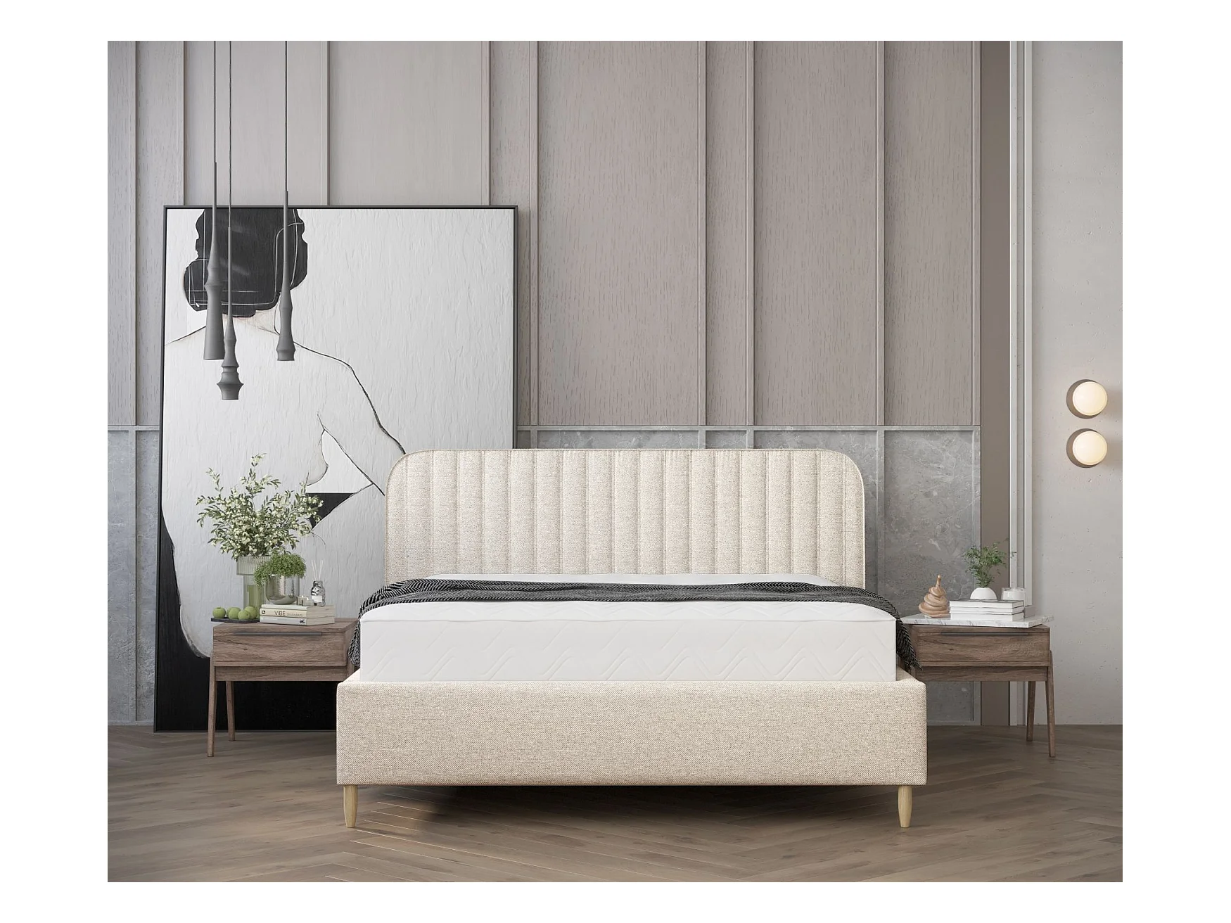 Lit coffre Noto - 140 x 200 cm - toile tissée - crème