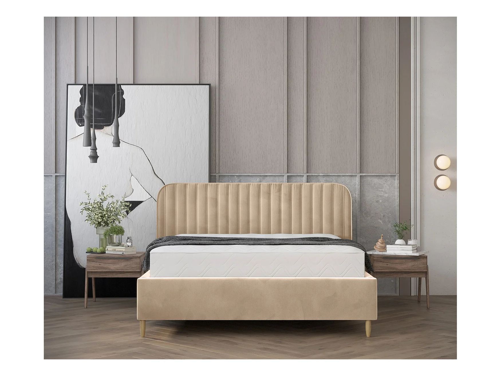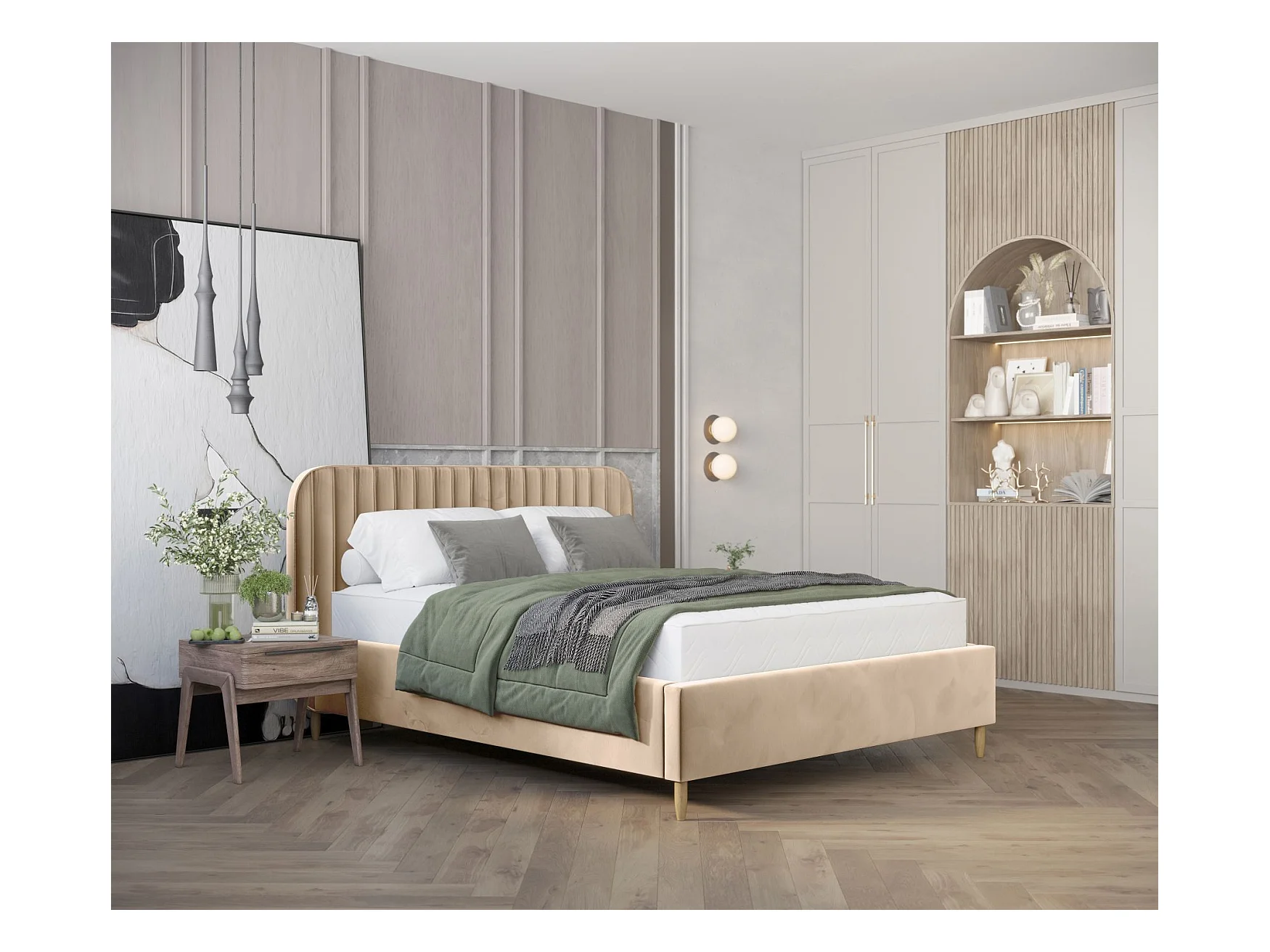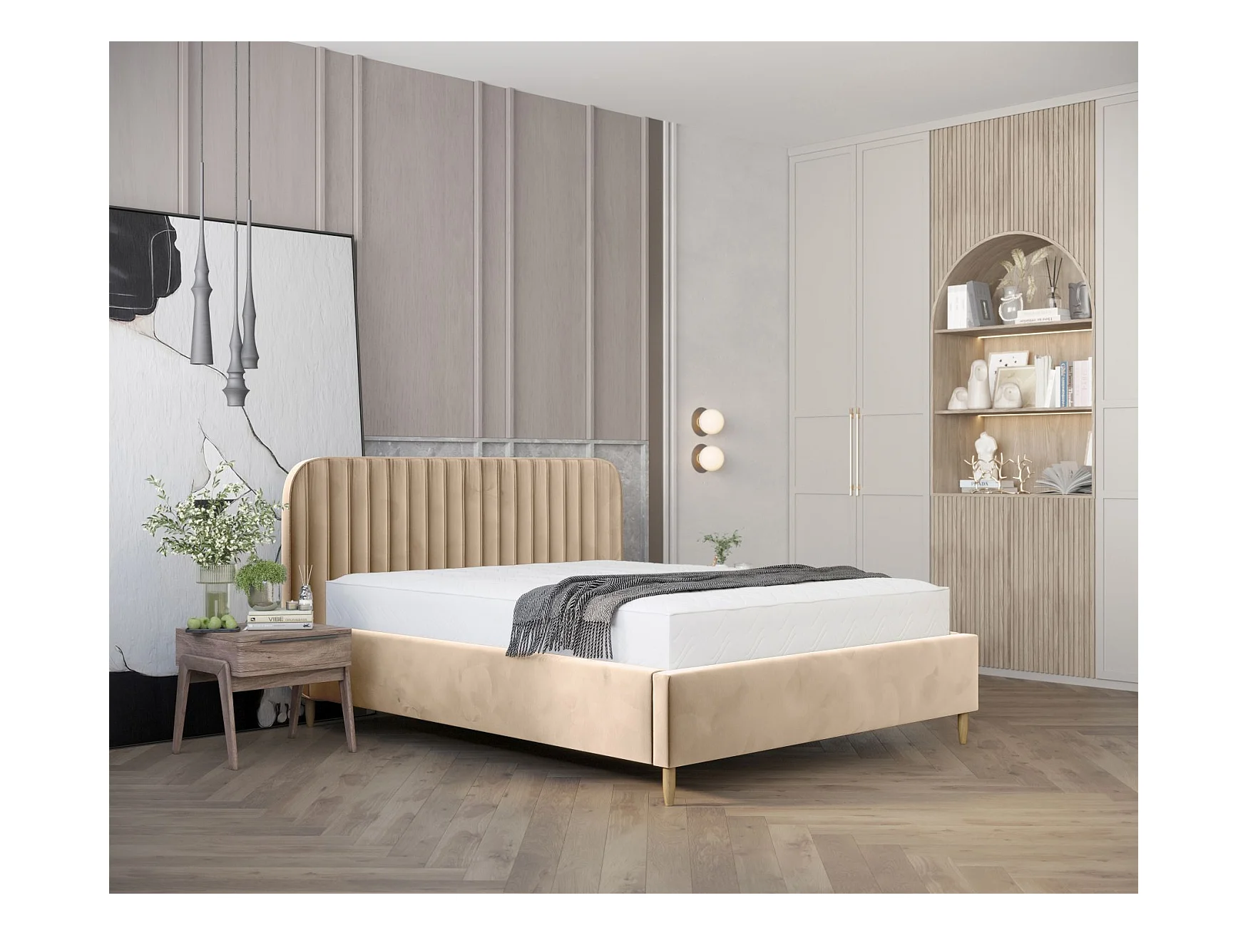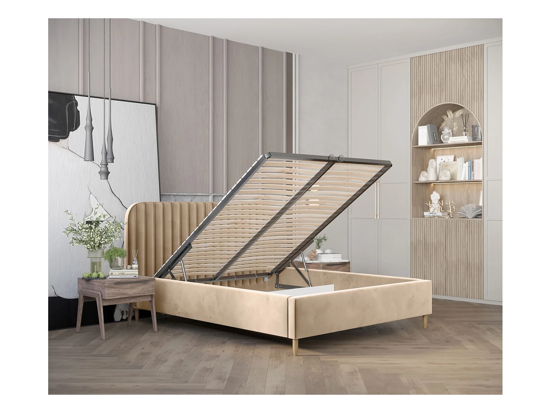 Lit coffre Noto - 140 x 200 cm - velours - beige