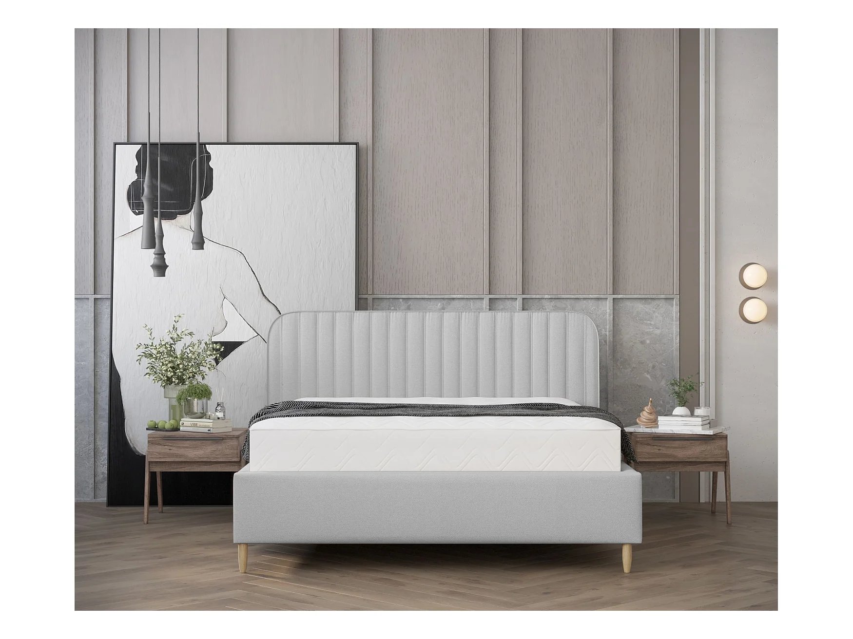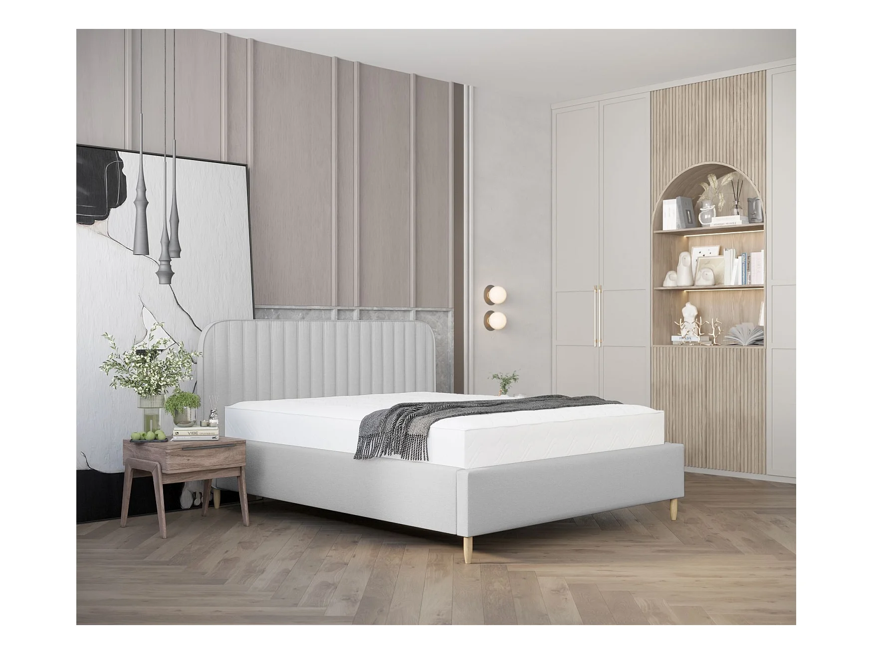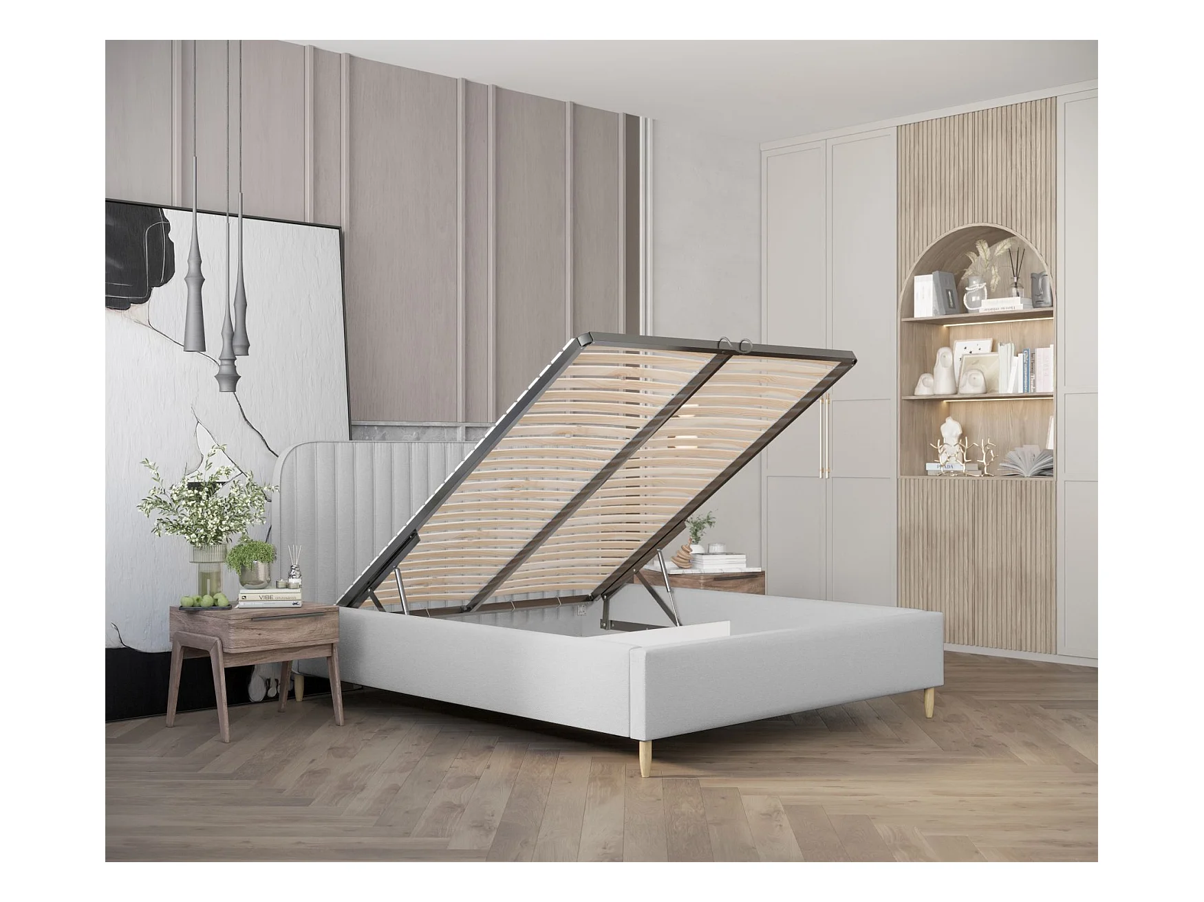 Lit coffre Noto - 160 x 200 cm - toile tissée - gris clair