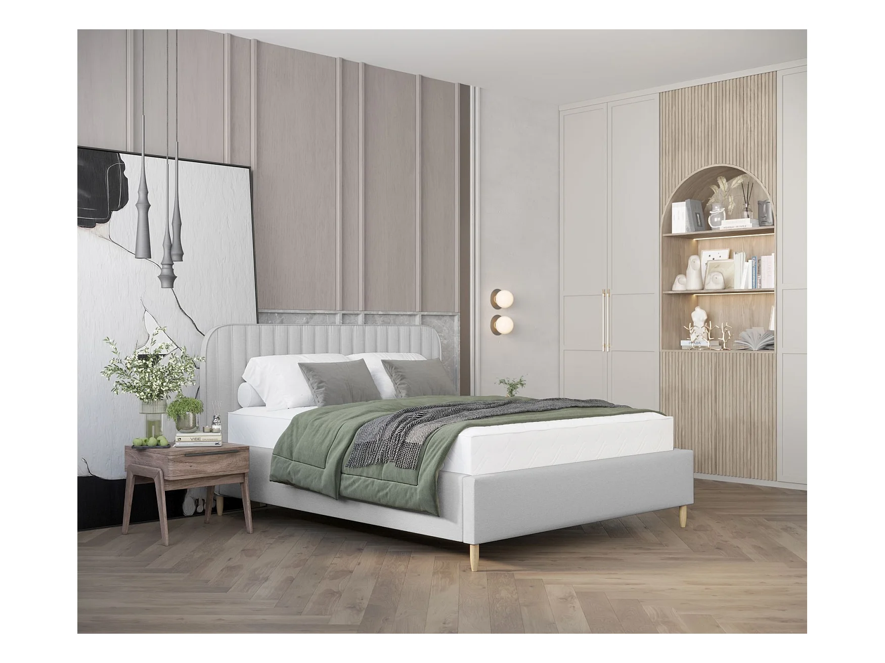 Lit coffre Noto - 180 x 200 cm - toile tissée - gris clair