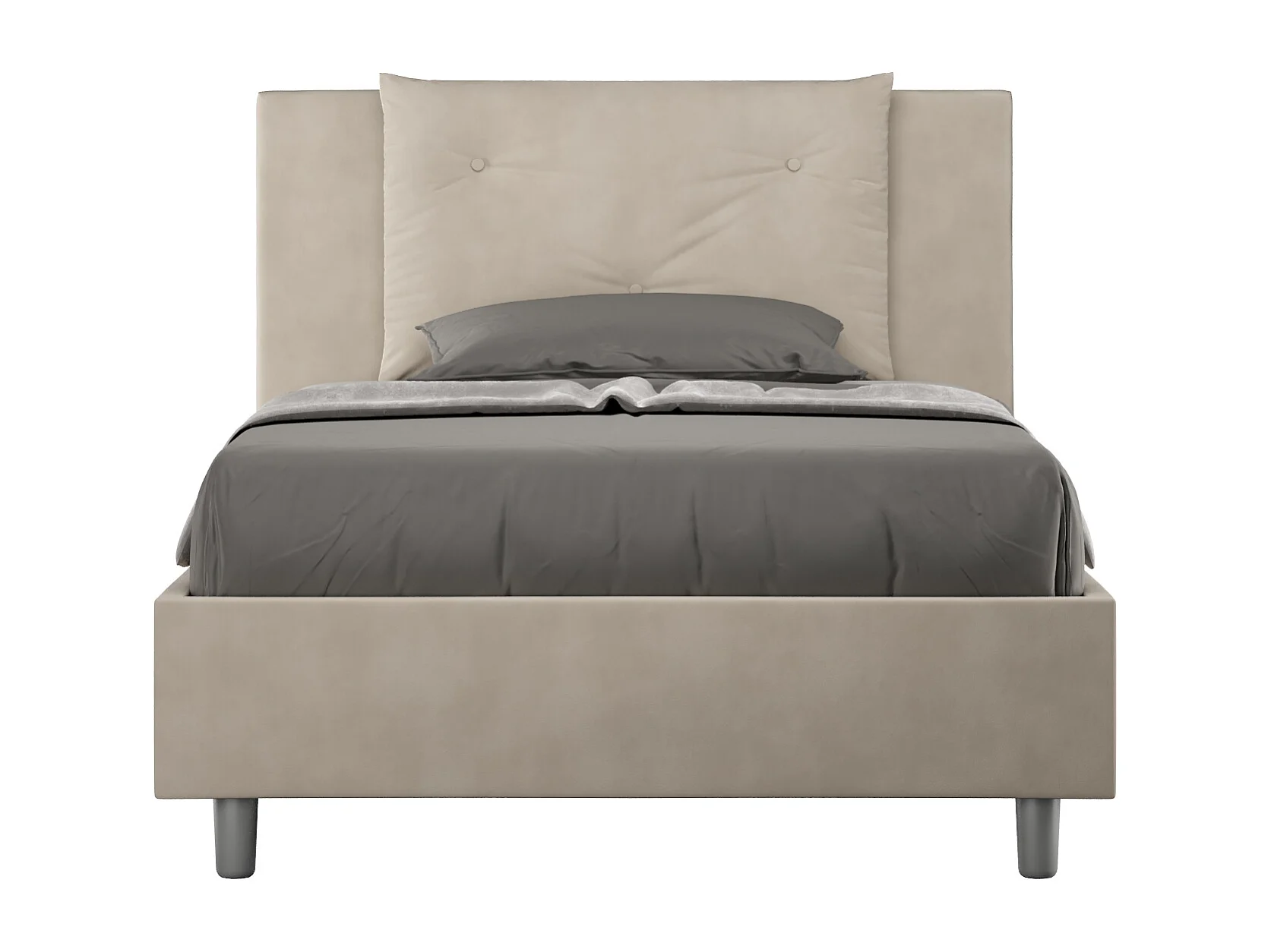 Lit 1 place et demi coffre rembourré 120x210 microfibre sable Appia