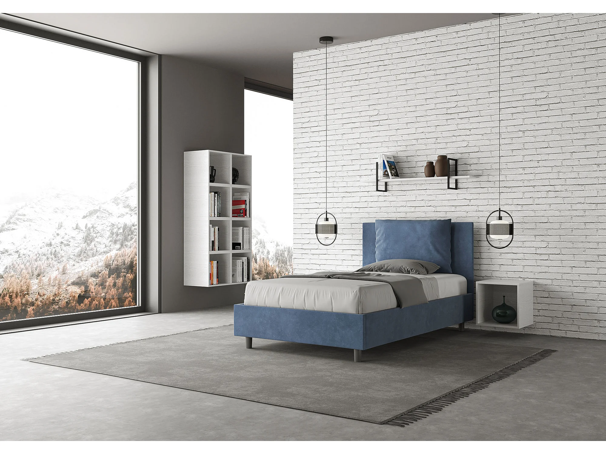 Lit 1 place et demi coffre rembourré 120x210 microfibre bleu Antea