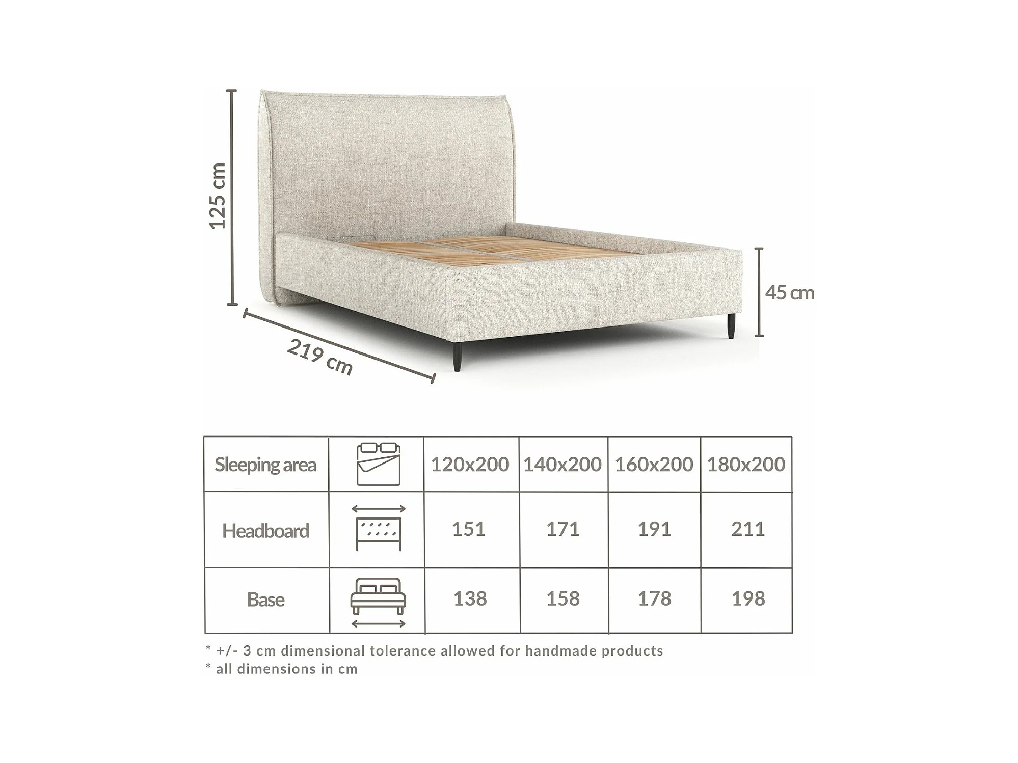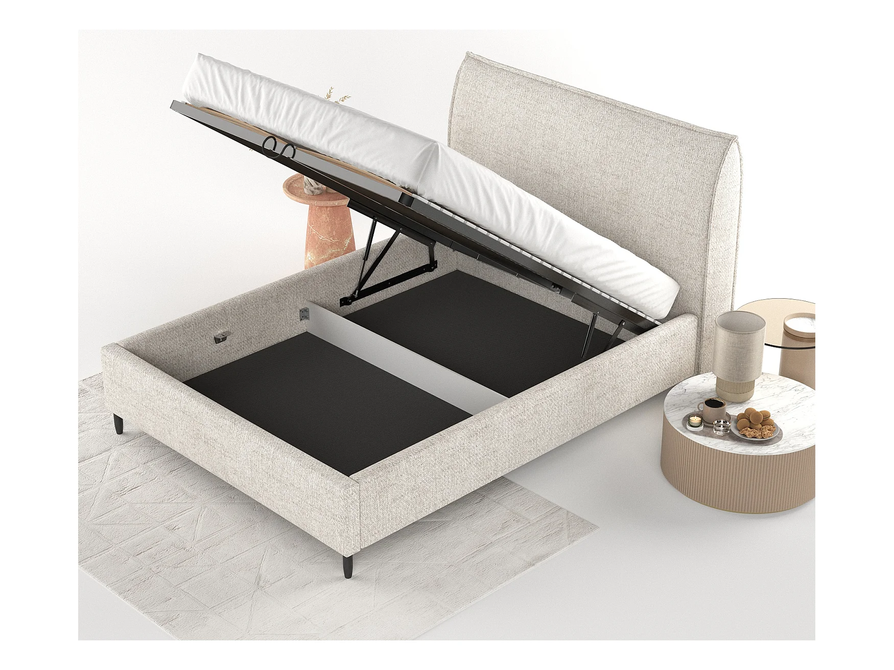 Lit capitonné Shell - 140 x 200 cm - toile tissée - creme