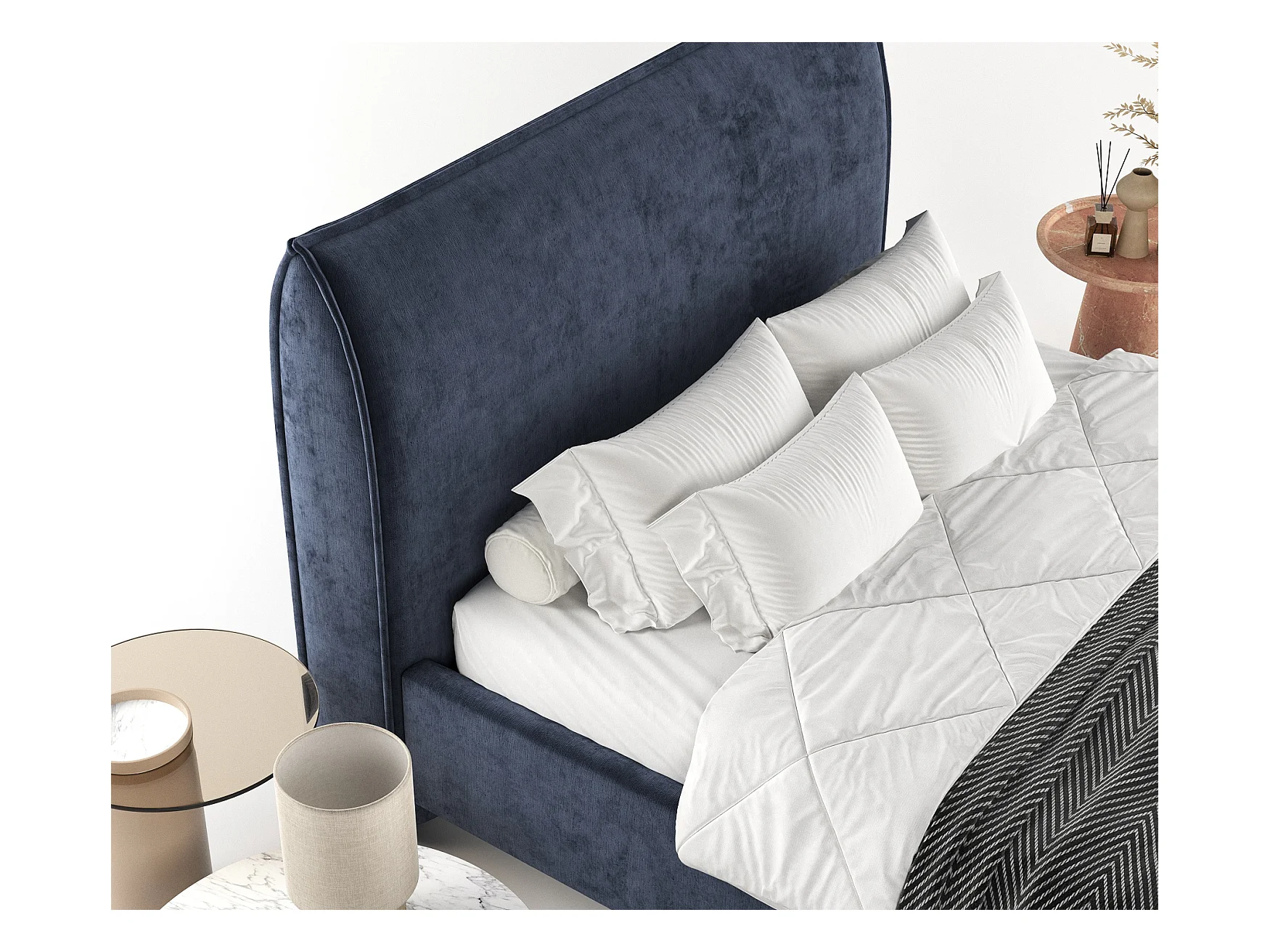 Lit capitonné Shell - 180 x 200 cm - chenille - bleu marine