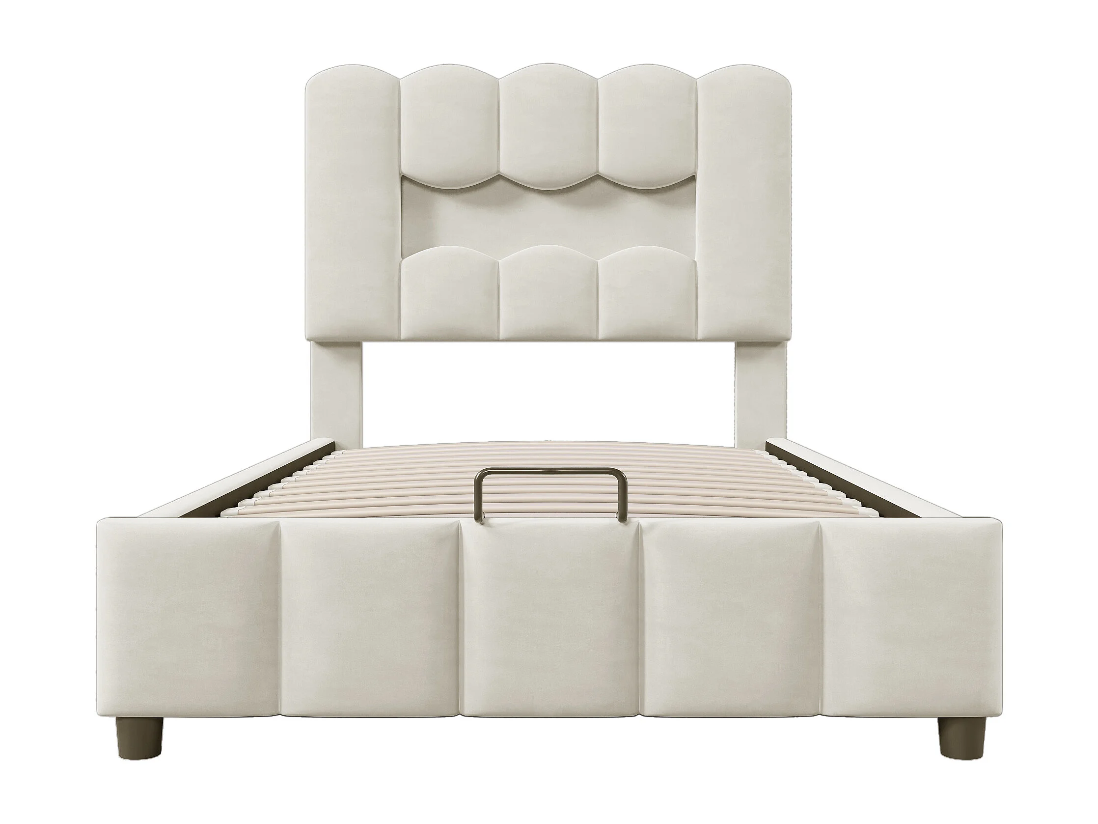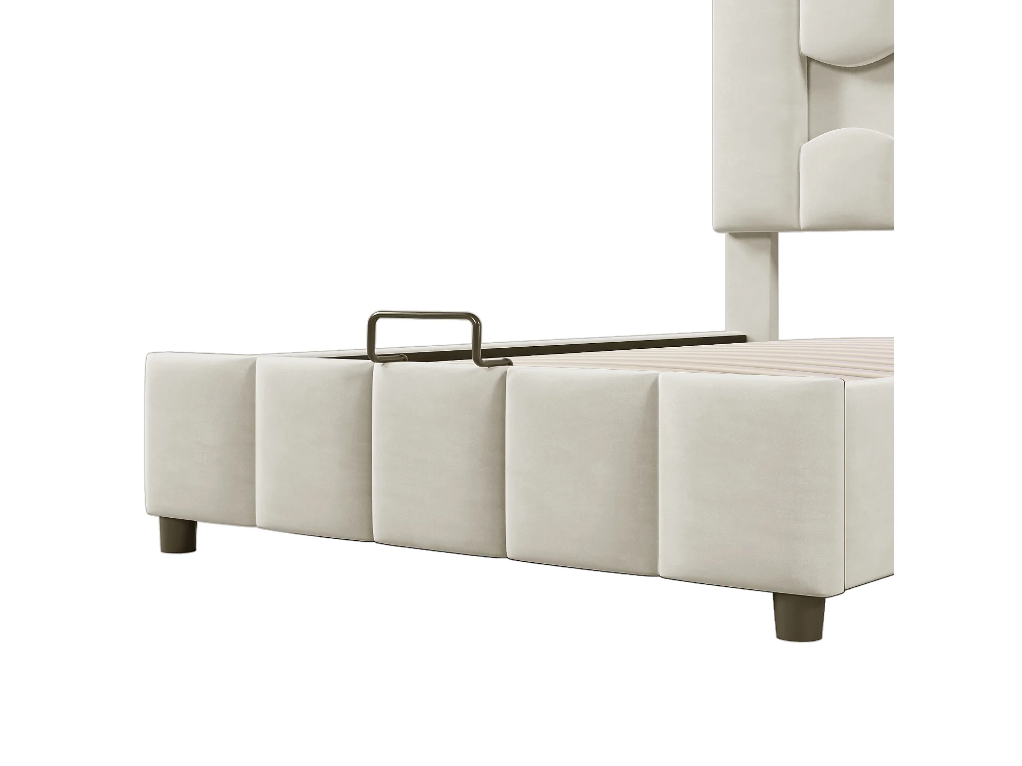 Lit coffre simple 90x200 cm, tissu en fond, rangement, LED, tête de lit réglable, Velours beige, sans matelas
