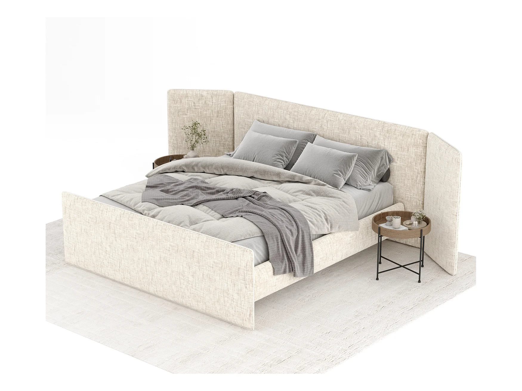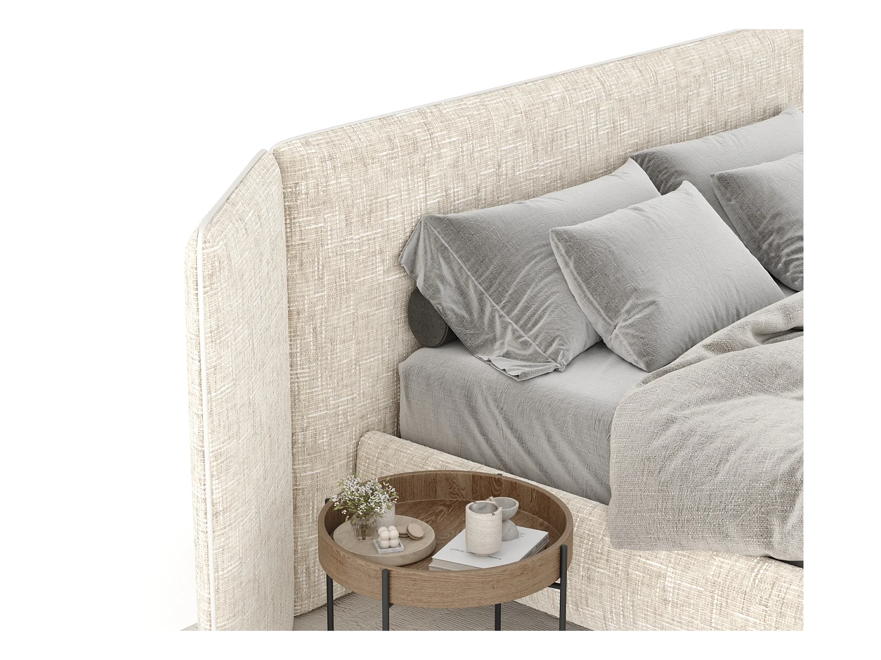 Lit coffre Tokyo - 160 x 200 cm - toile tissée - beige clair