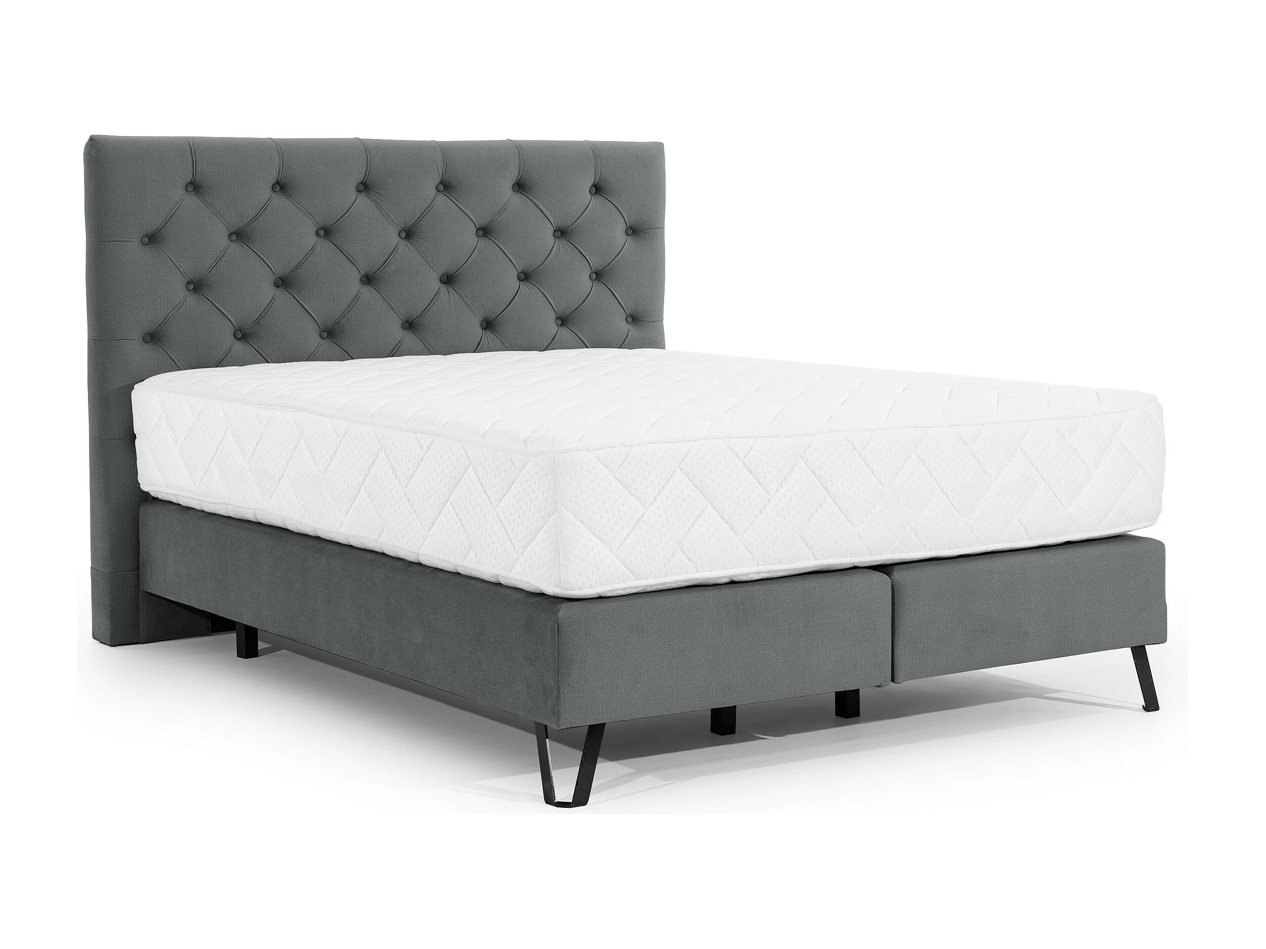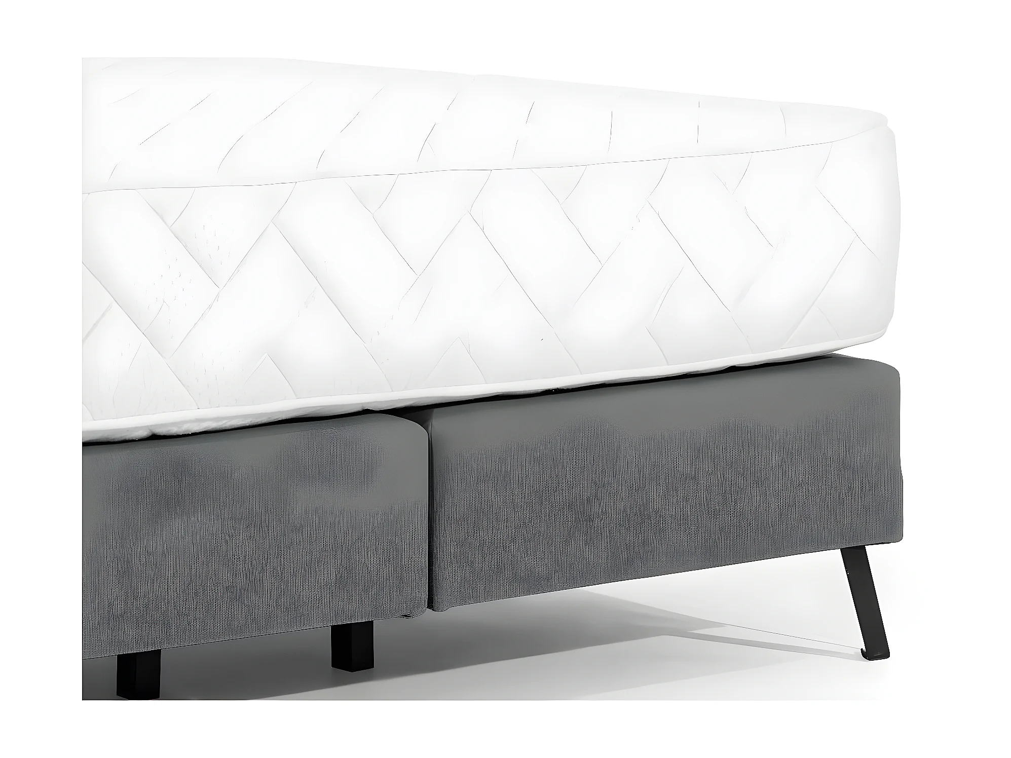 Lit continental capitonné tissu anthracite Pozza avec matelas 30cm en latex et pied métal noir-160x200