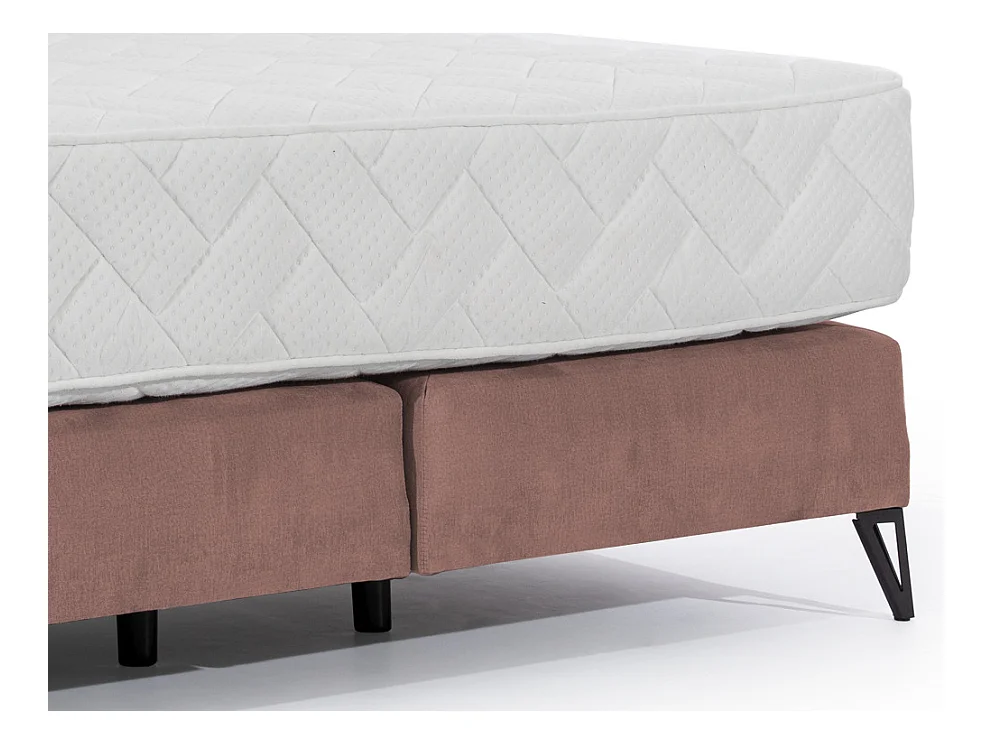 Lit continental tissu rose Tiempo avec matelas 30cm en latex et pied métal noir-160x200