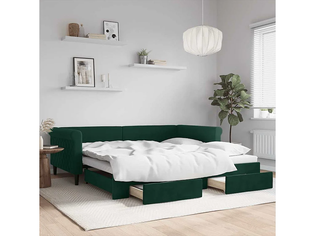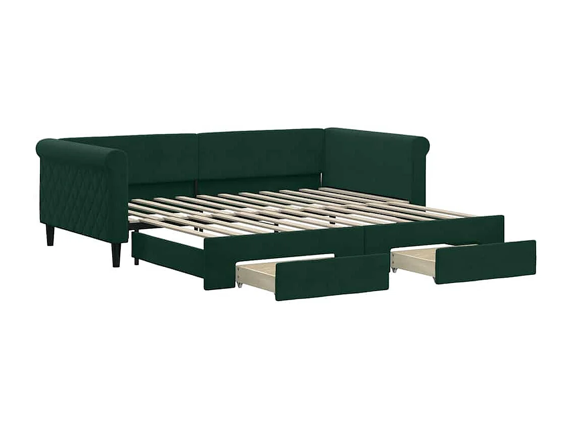 Lit de jour et gigogne et tiroirs vert foncé 100x200 cm velours
