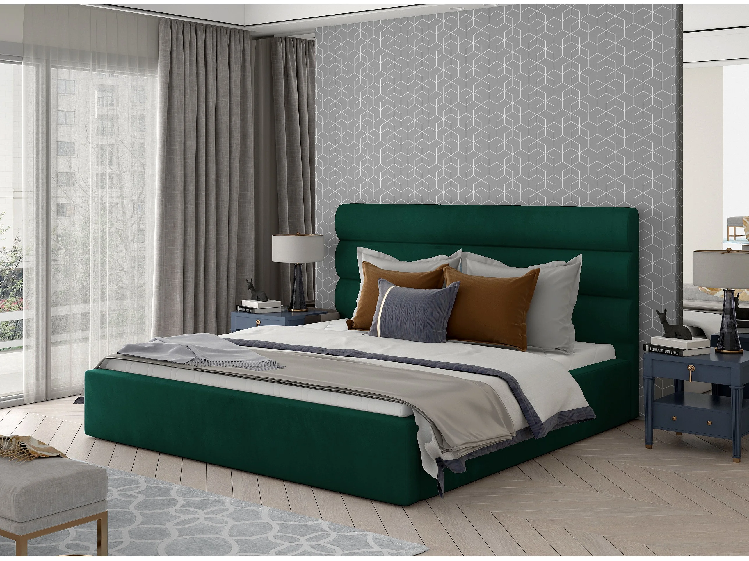 Lit design velours vert avec coffre de rangement Klarina - 4 tailles-160x200