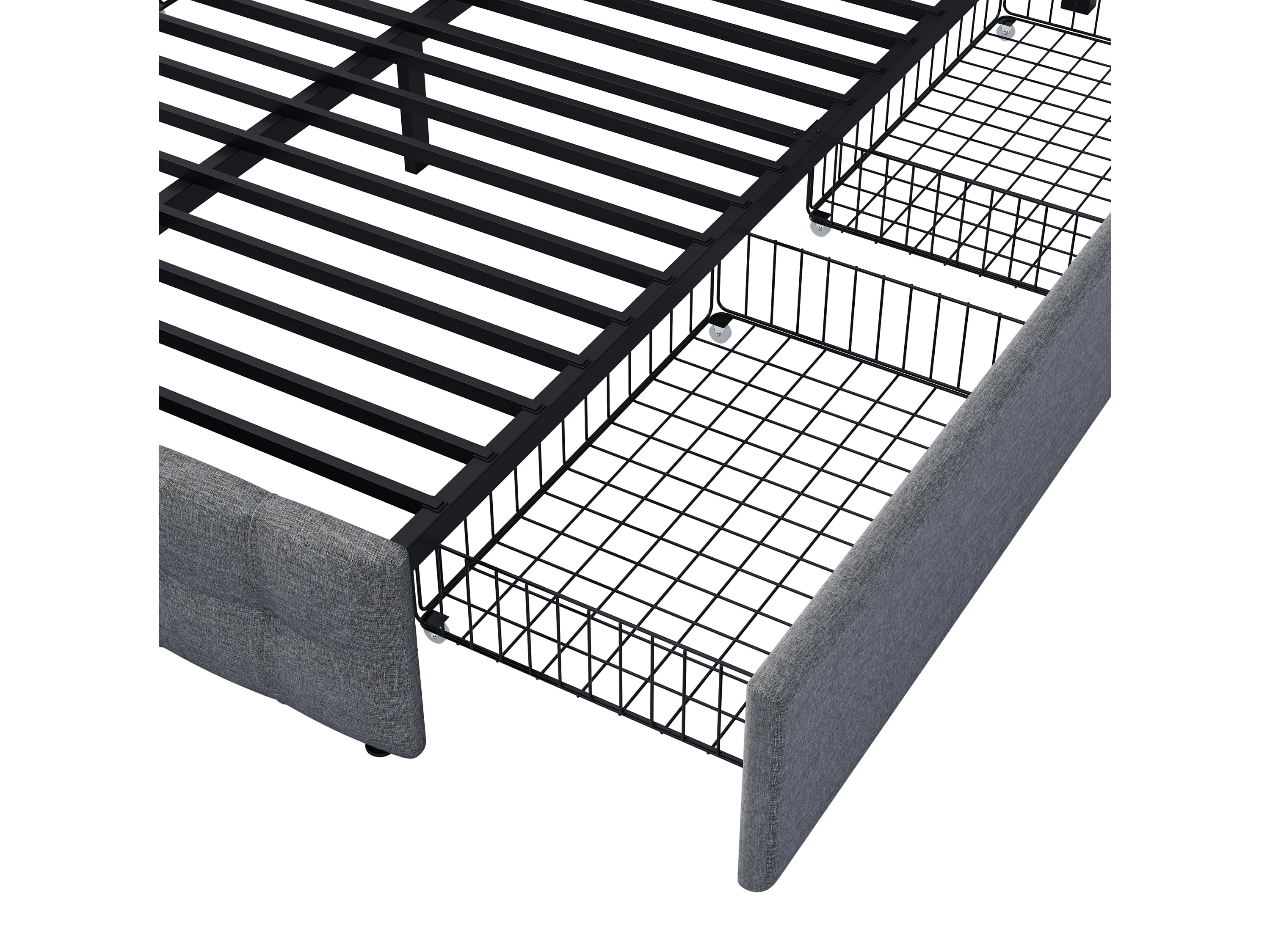 Lit double 140x200 cm avec sommier - tête de lit réglable en hauteur et 4 tiroirs - cadre métallique - lin gris (sans matelas)