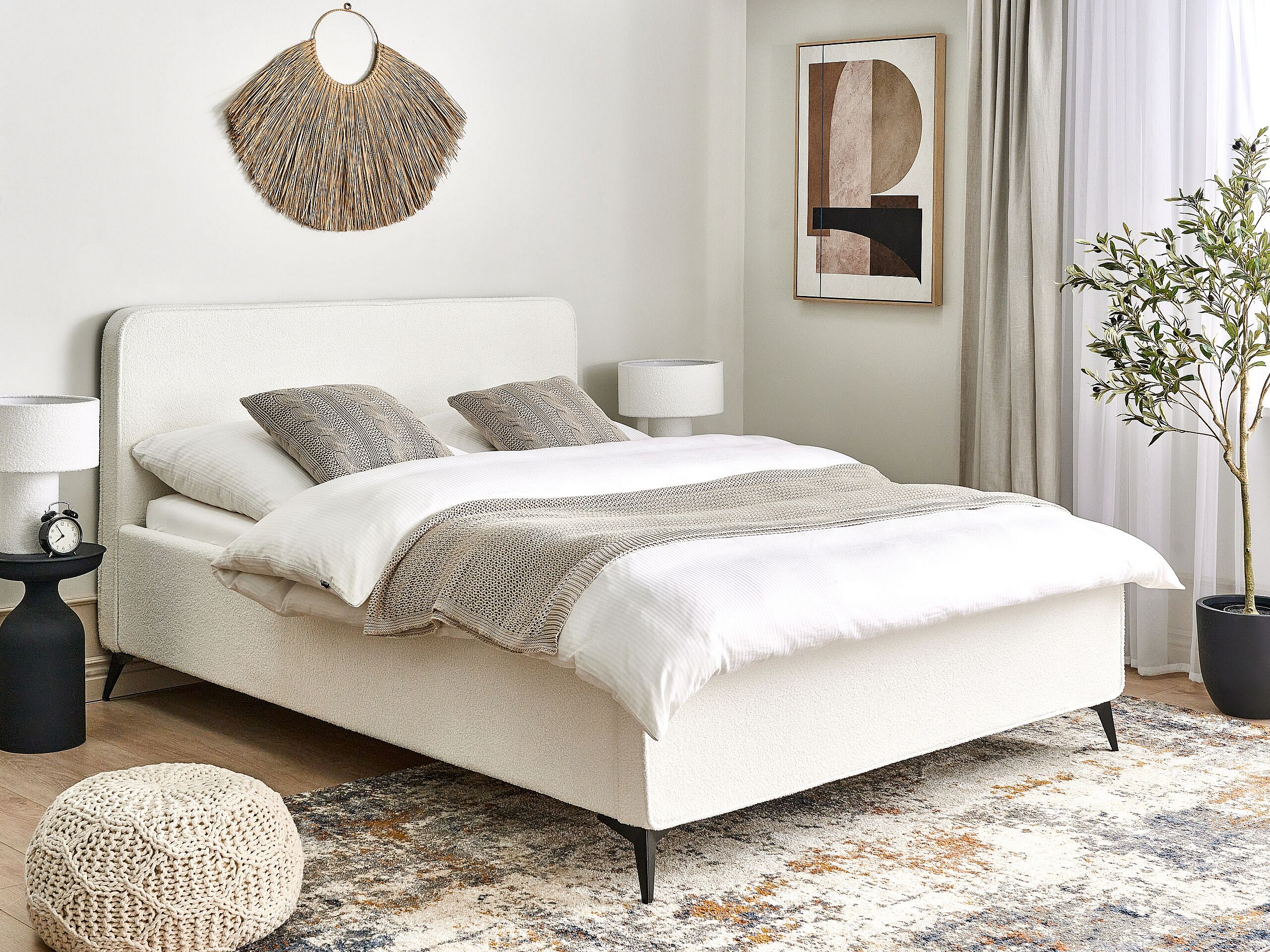 Lit avec sommier Bouclé VALOGNES 160 x 200 cm Blanc cassé