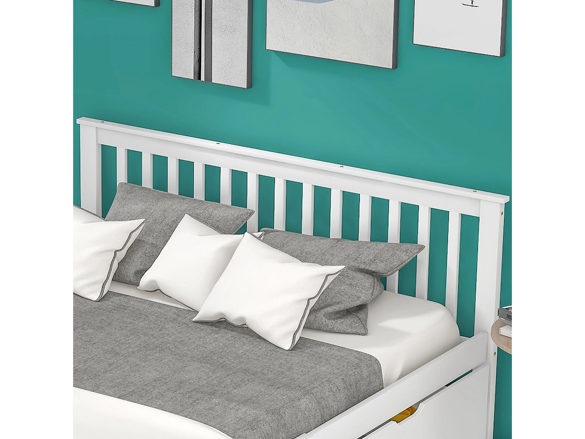 Lit double 205x147x82.5 cm avec Tiroirs de rangement Structure en pin en blanc pour adultes et adolescents