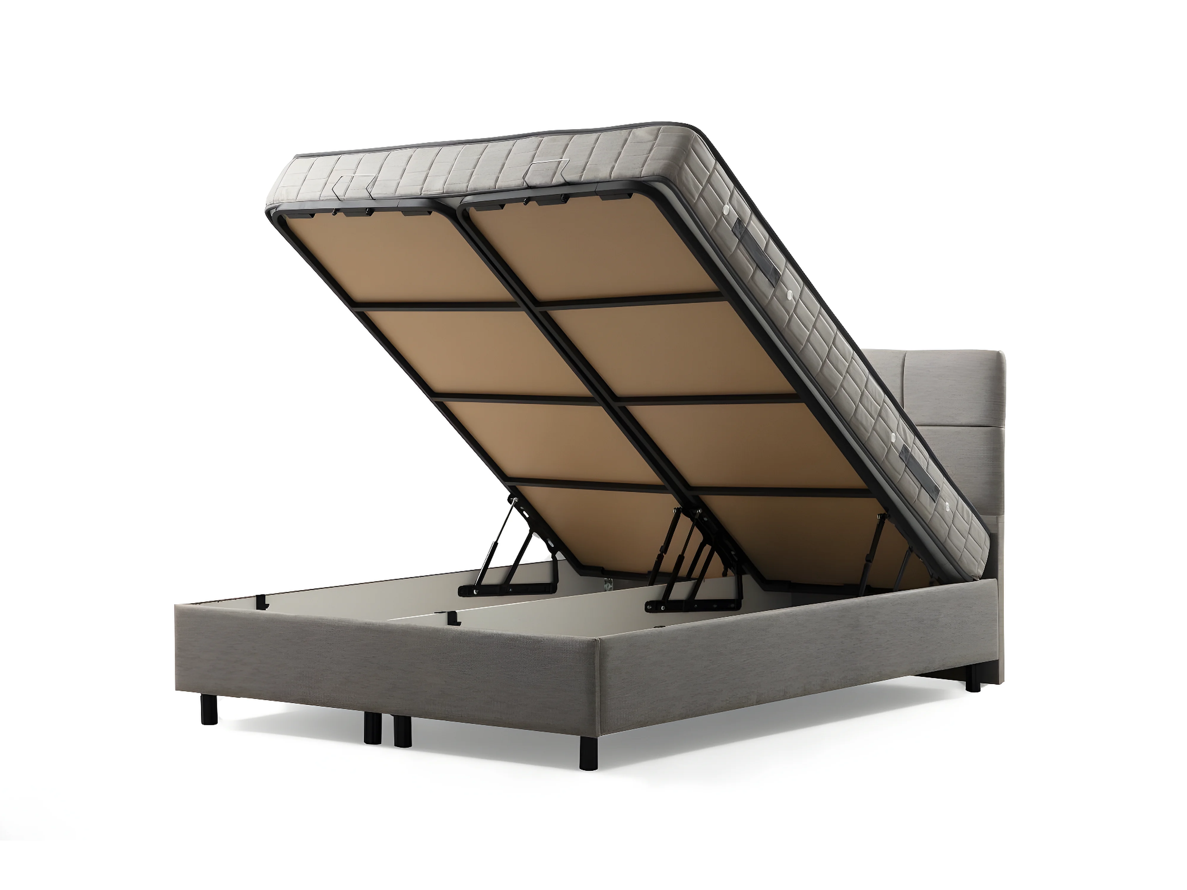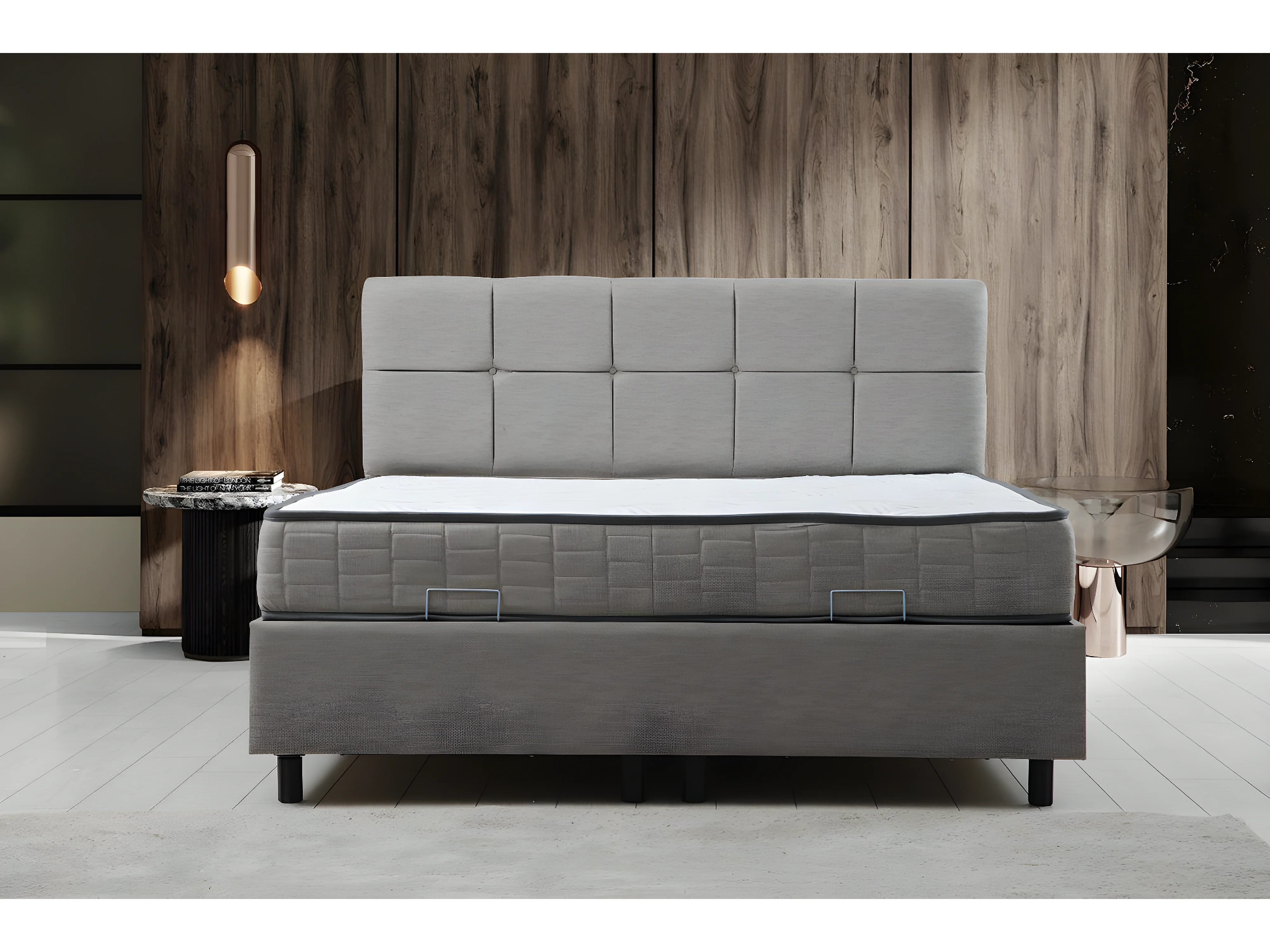 Lit double à sommier relevable Testin 160x200cm avec matelas antibactérien à ressort Velours Gris clair