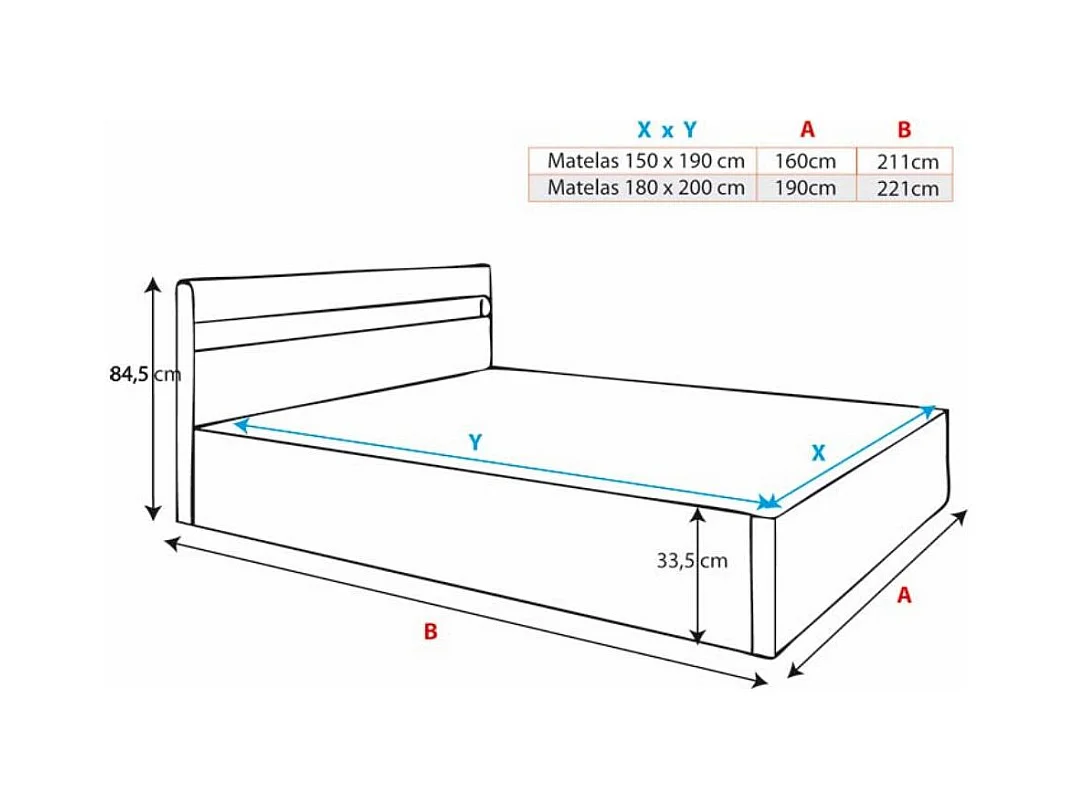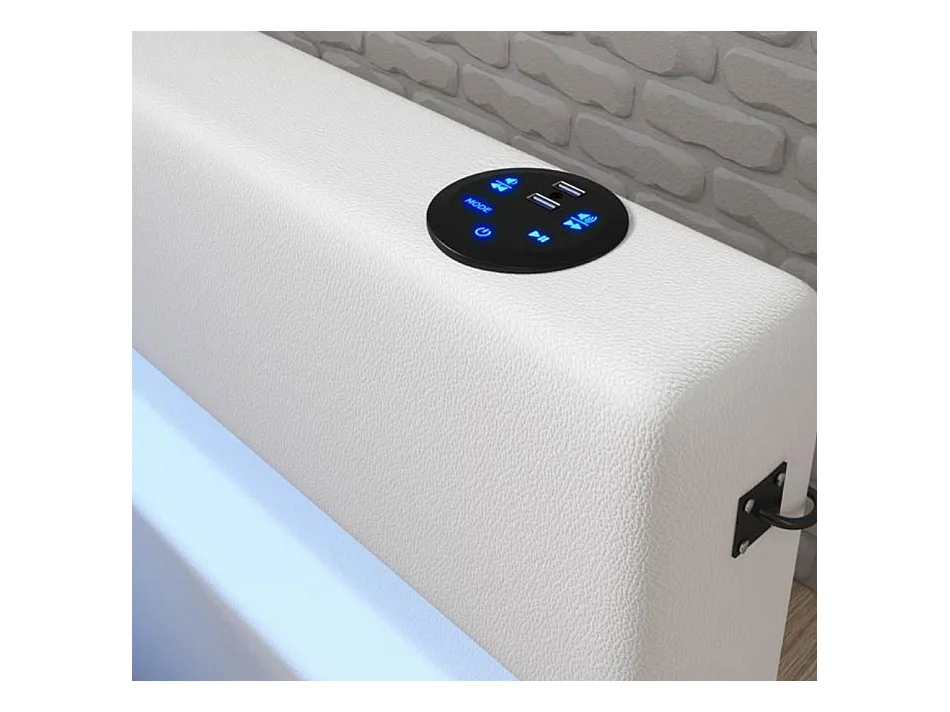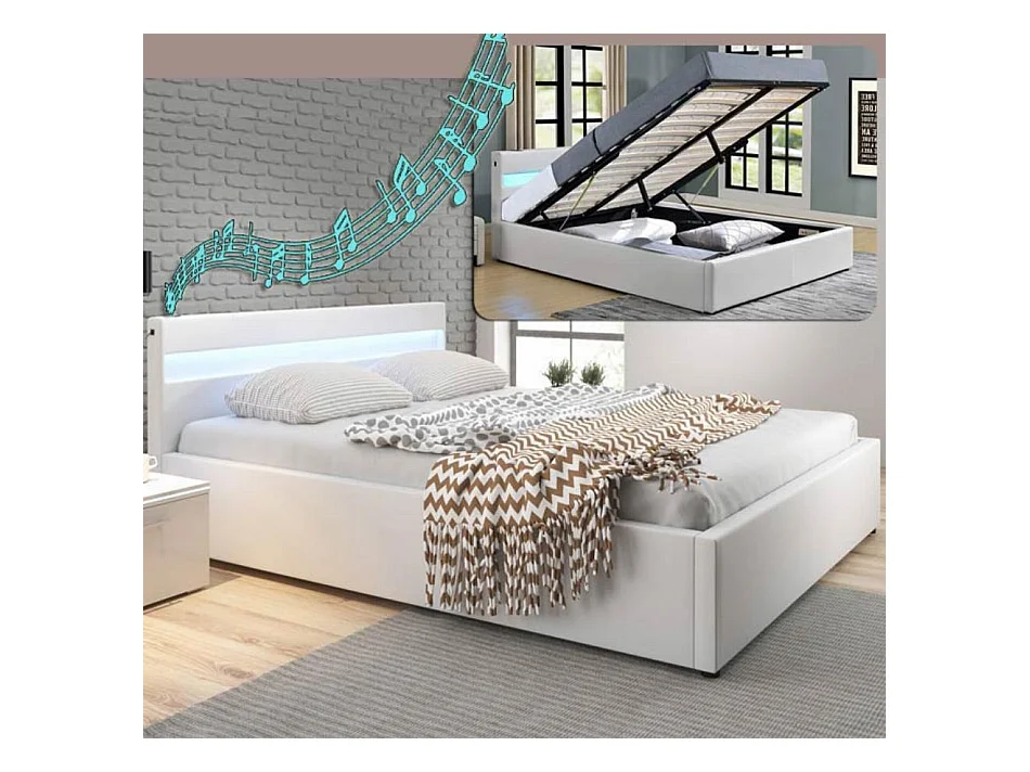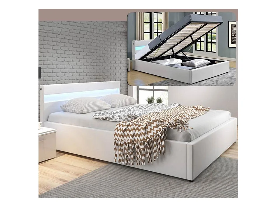 Lit double avec coffre 180x200cm en Blanc avec LED Bahia