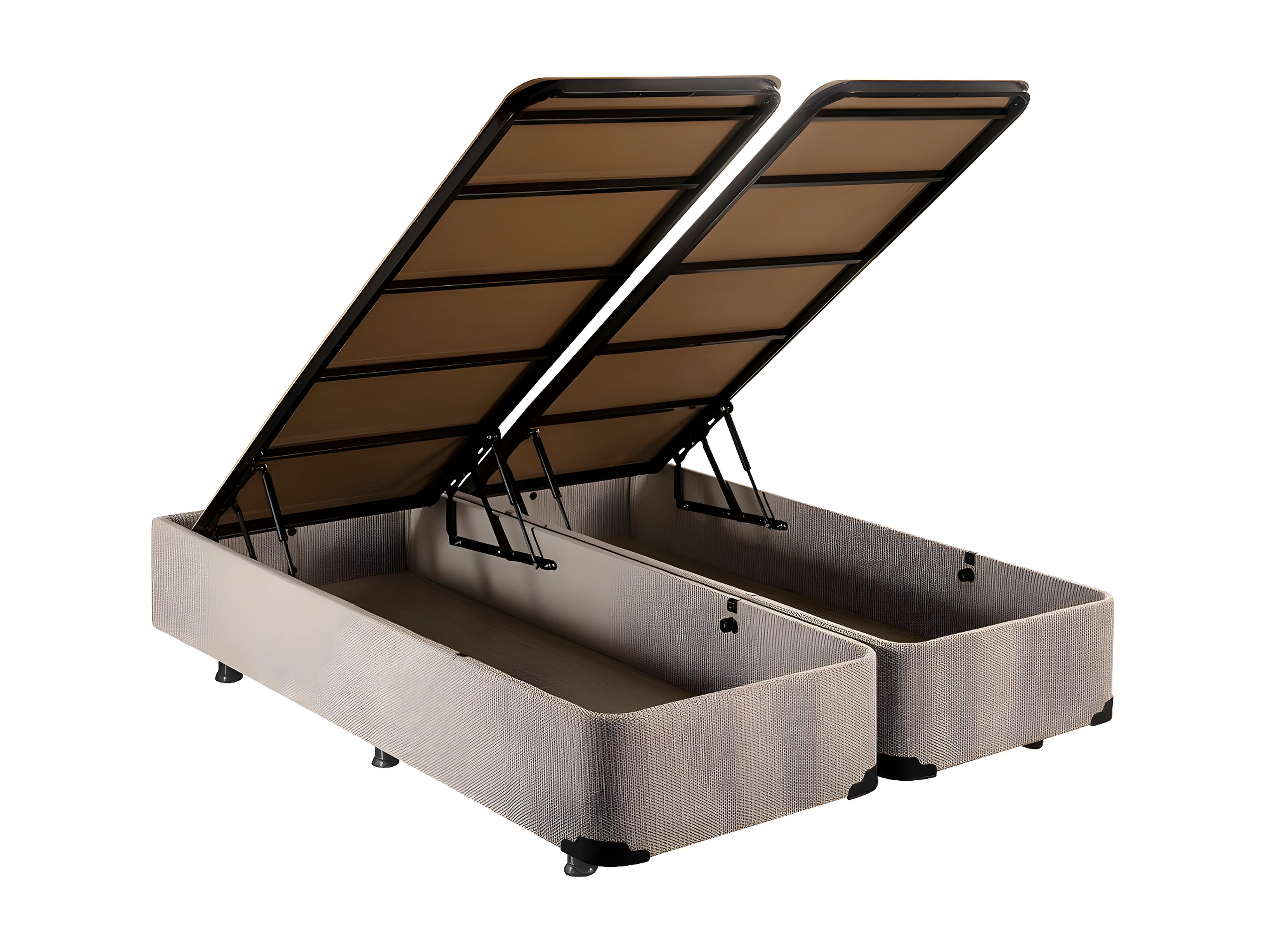 Lit double avec rangement Rafael 180x200cm Tissu Beige