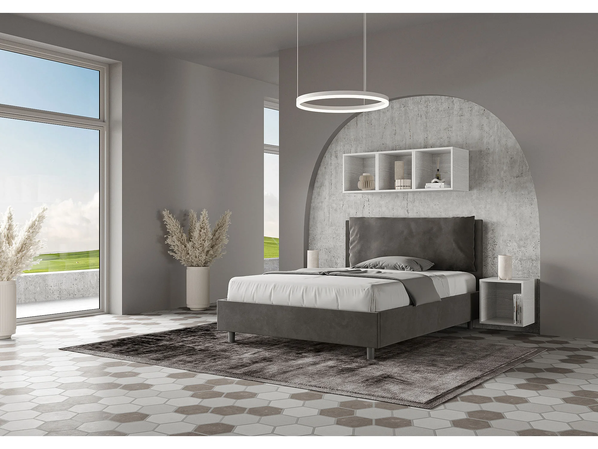 Lit double sans sommier rembourré 140x190 microfibre gris Appia Large