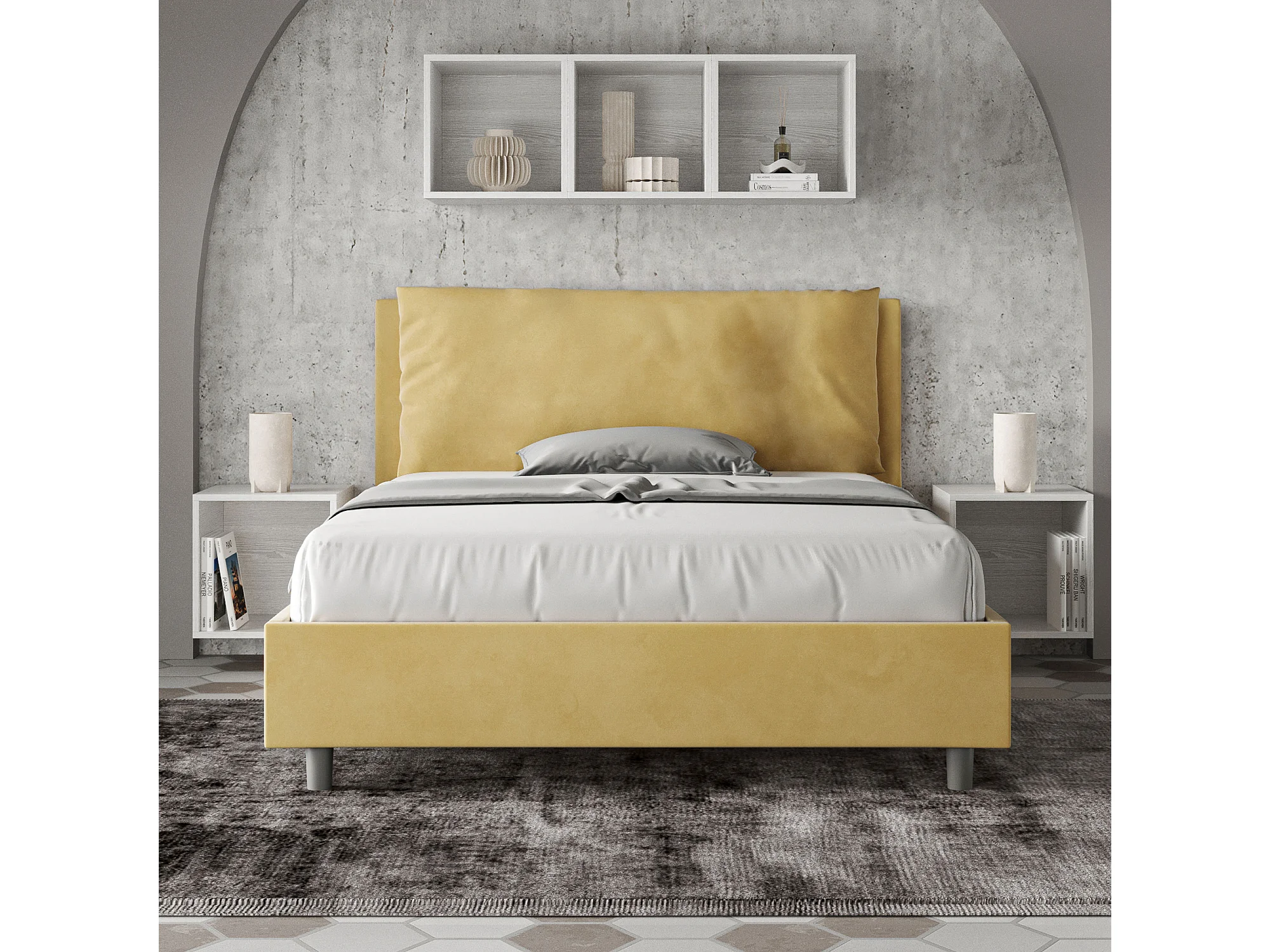 Lit double avec sommier rembourré 140x200 microfibre ocre Appia Large