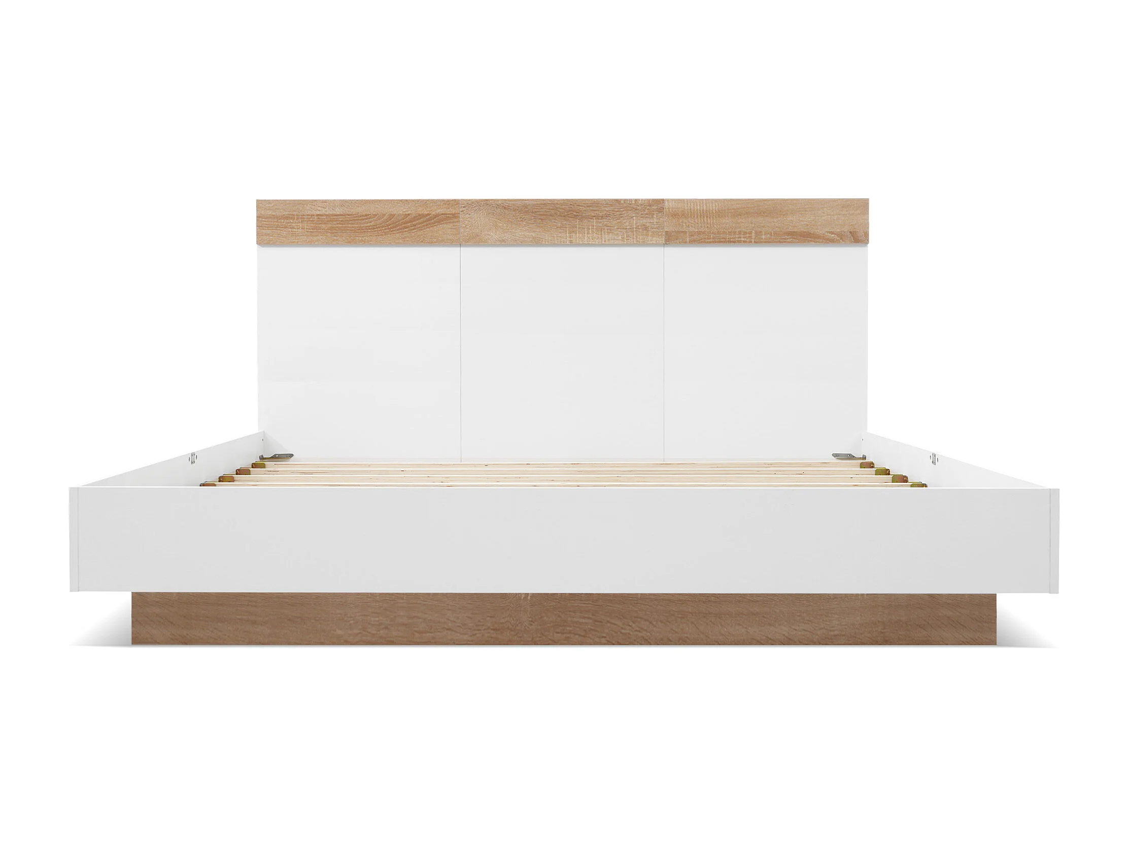 Lit double en bois 140x200 cm, style moderne, tête de lit, couleur de chêne Sonoma et blanc, sans matelas