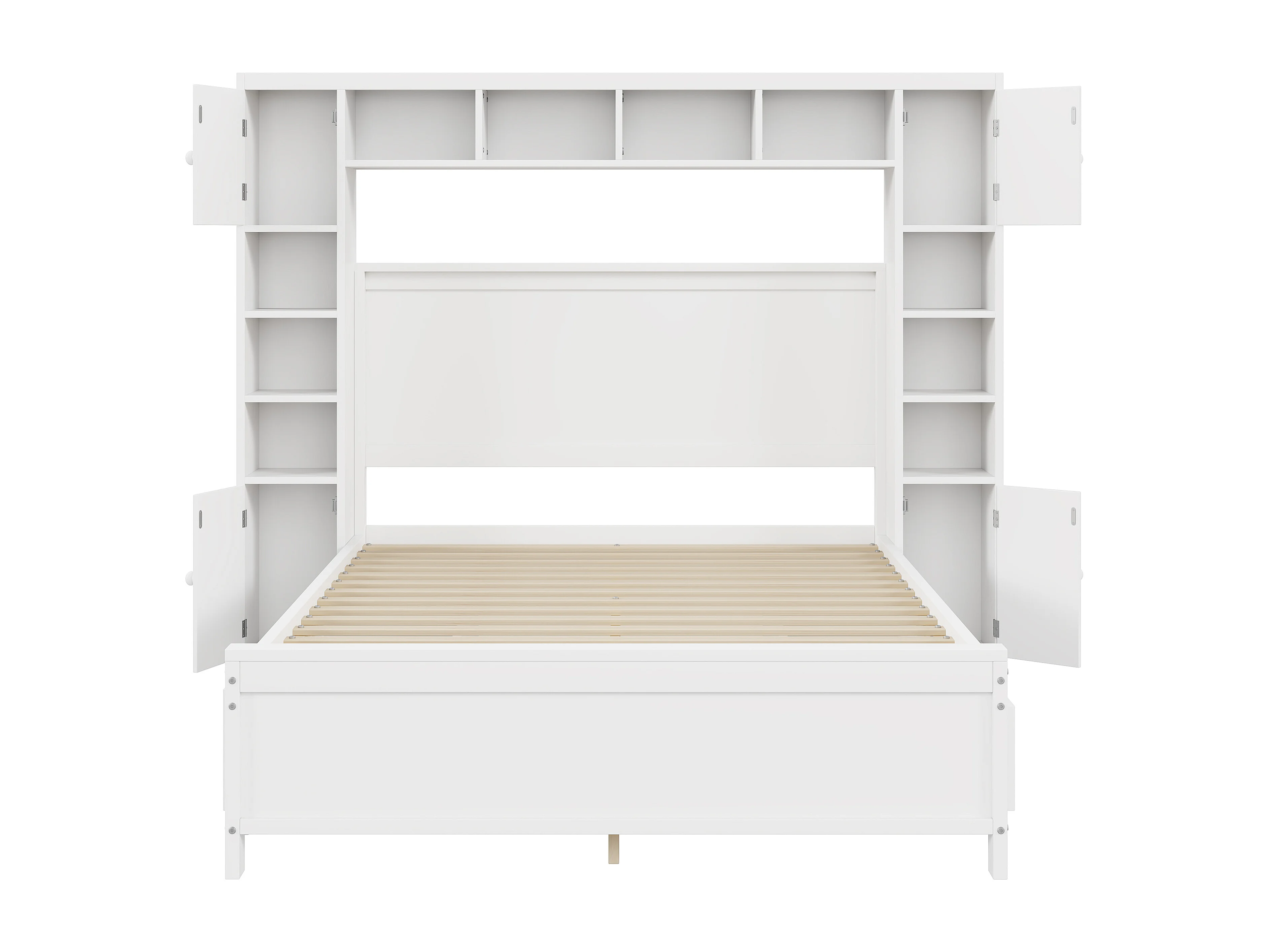 Lit adulte 140x200 cm lit double avec tiroirs et chevet de rangement - en bois massif - blanc - sans matelsa