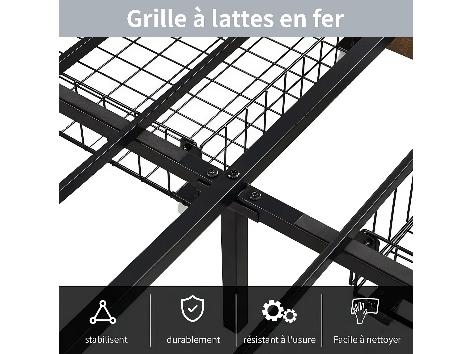 Lit Double En Métal 140x200cm, Lit Jeunesse Avec LED Et Étagère, Lit Coffre Avec 4 Tiroirs, Noir