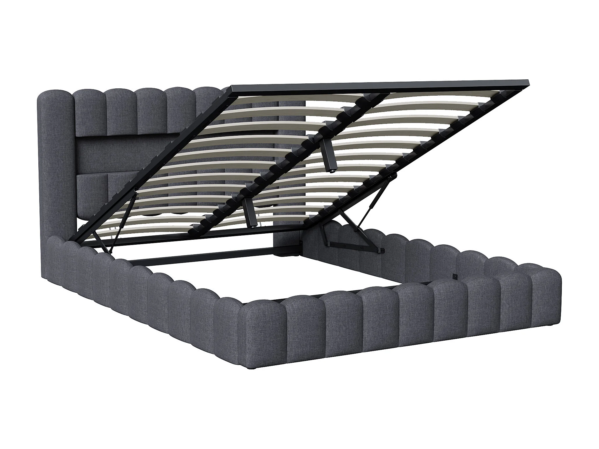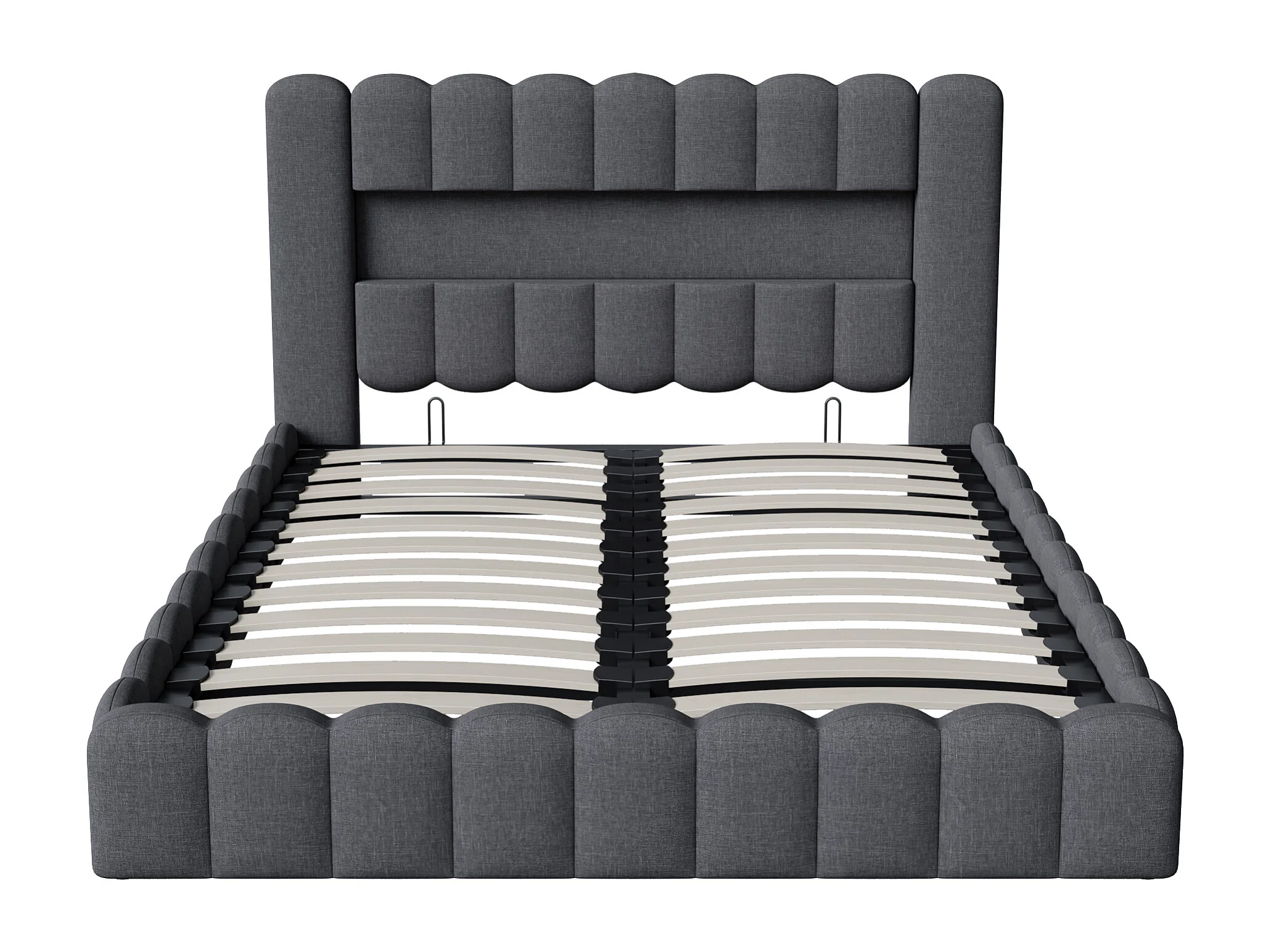 Lit double rembourré 160 x 200 cm, avec LED et USB, avec sommier à lattes et tête de lit, lin, Gris