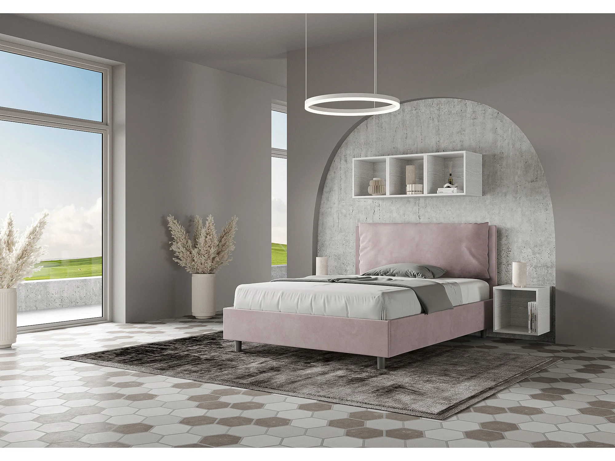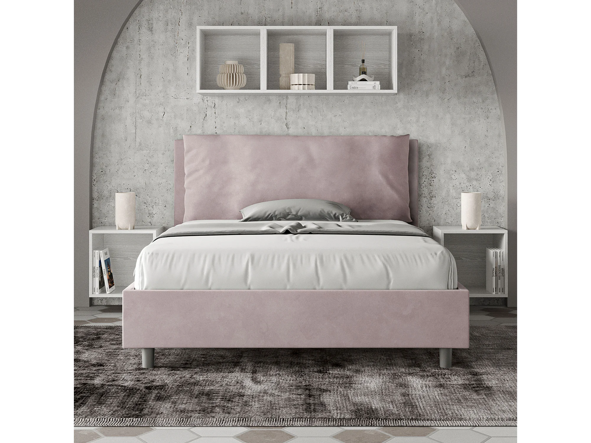 Lit double sans sommier rembourré 140x190 microfibre lilas Appia Large