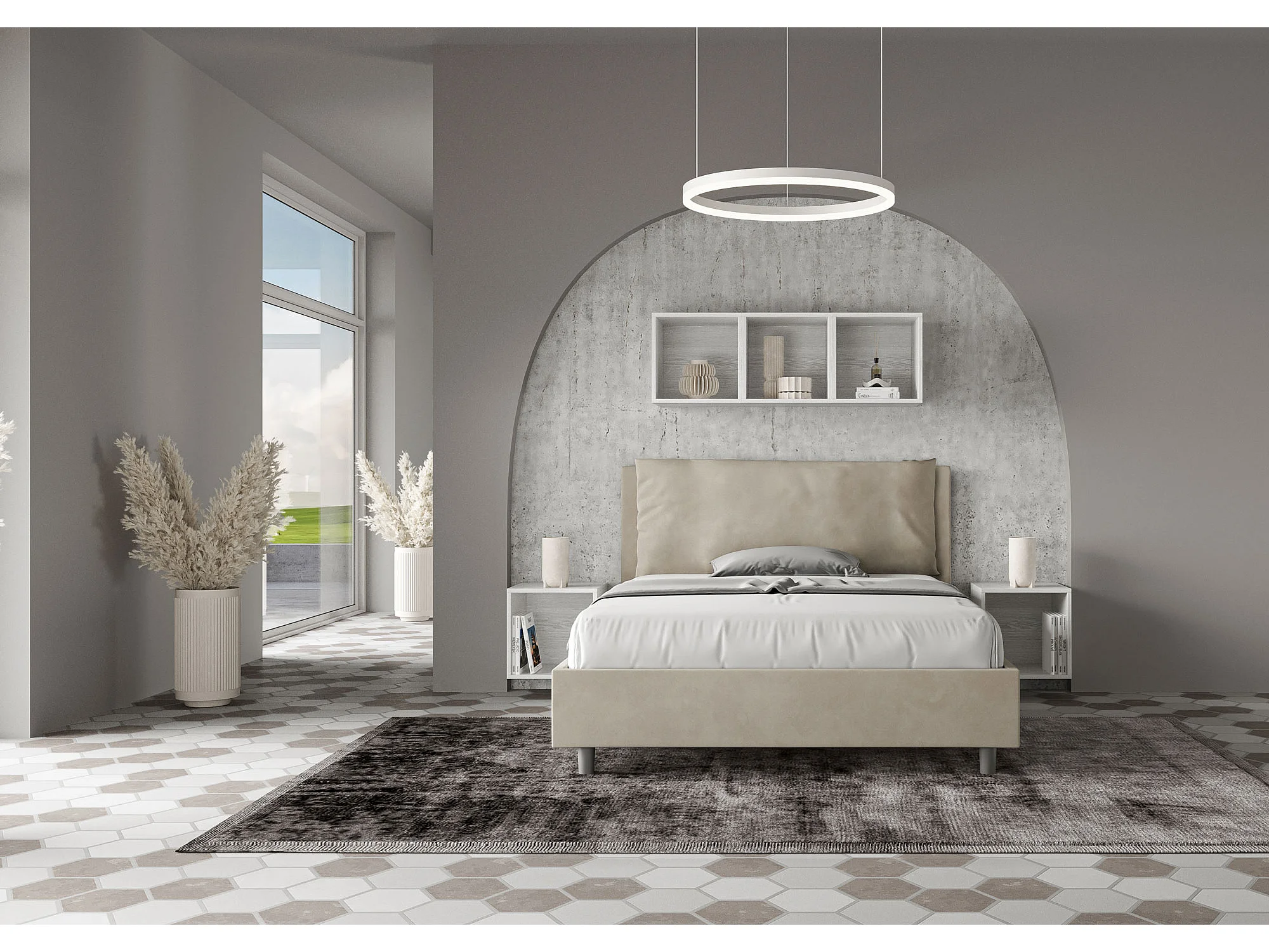 Lit double avec sommier rembourré 140x190 microfibre sable Appia Large