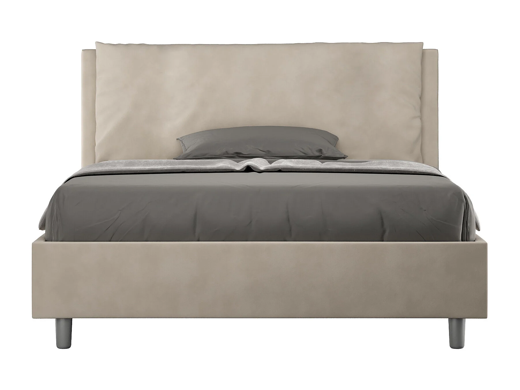 Lit double sans sommier rembourré 140x190 microfibre sable Appia Large