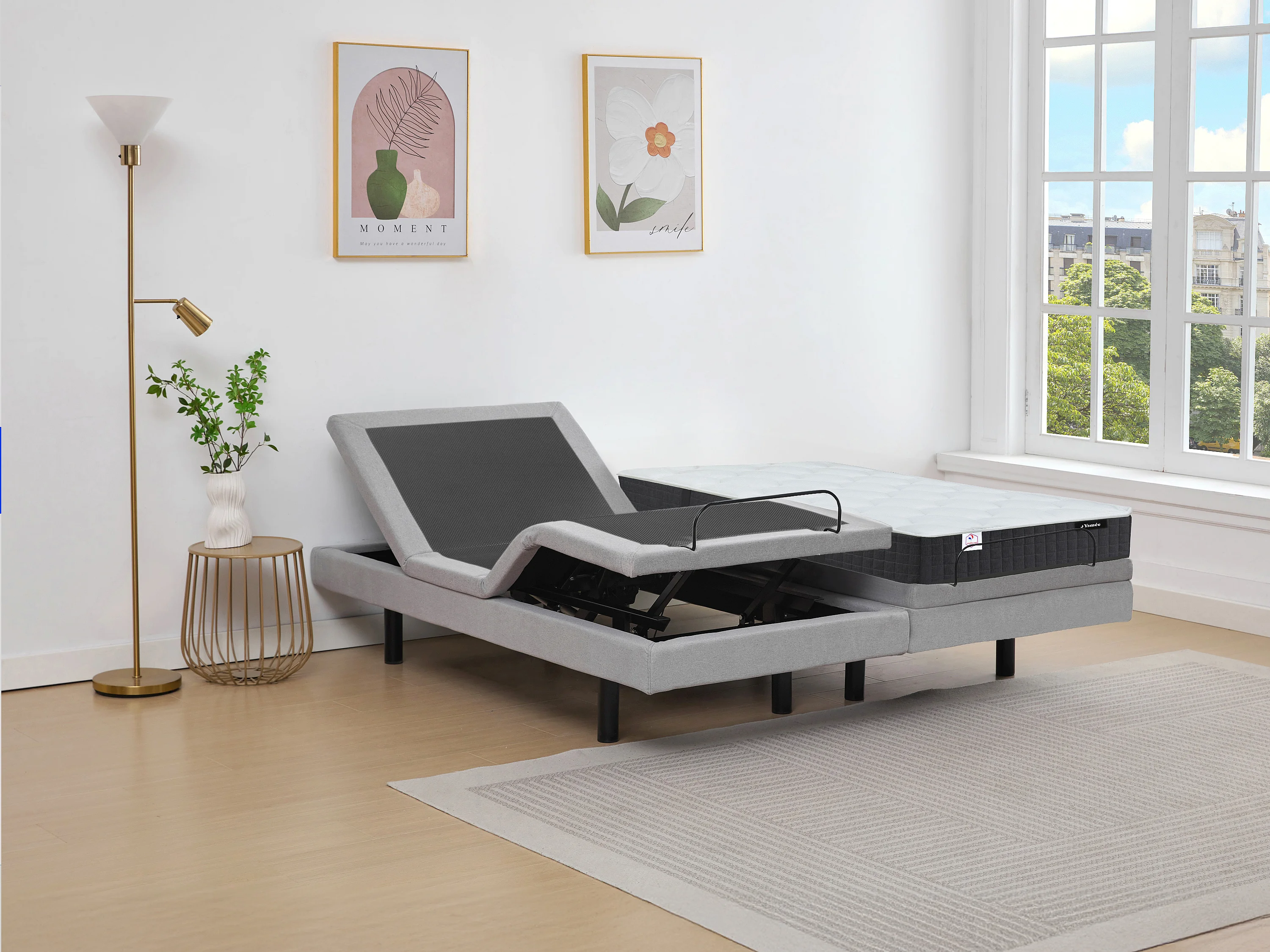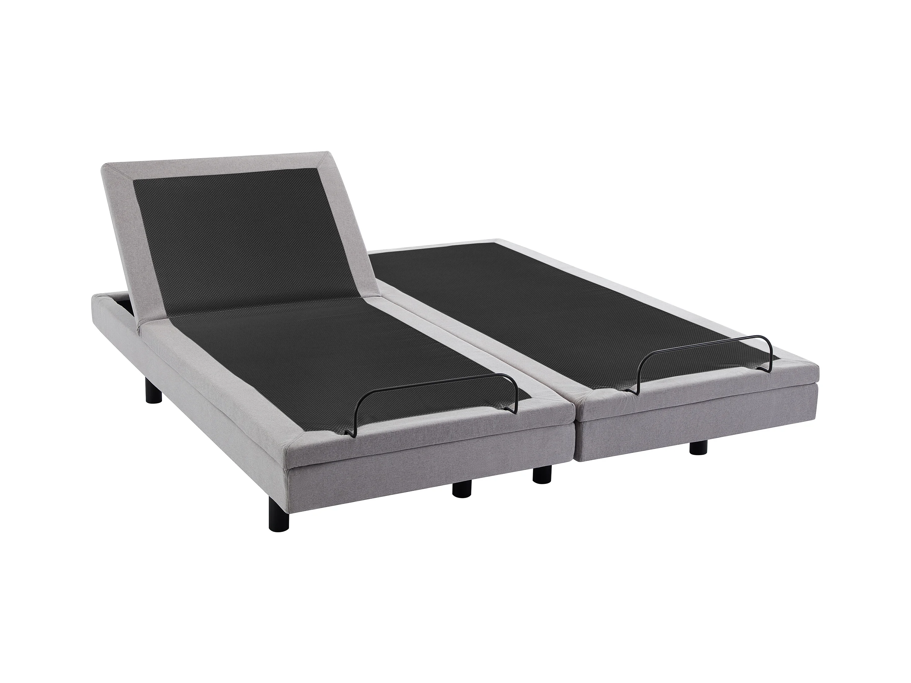 Lit électrique de relaxation déco + matelas ressorts ensachés et mémoire de forme - 2 x 80 x 200 cm - Tissu - Gris - RIZALI de YSMÉE