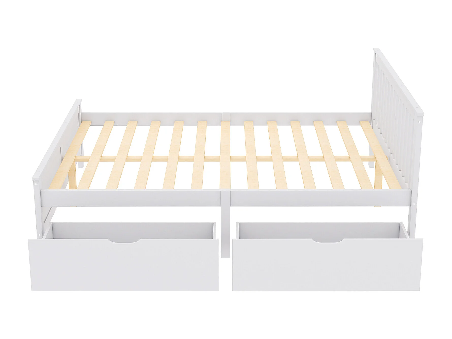 Lit en bois, lit double, lit jeune, lit adulte, avec tiroirs de rangement, cadre en bois de pin, blanc (140x200cm)