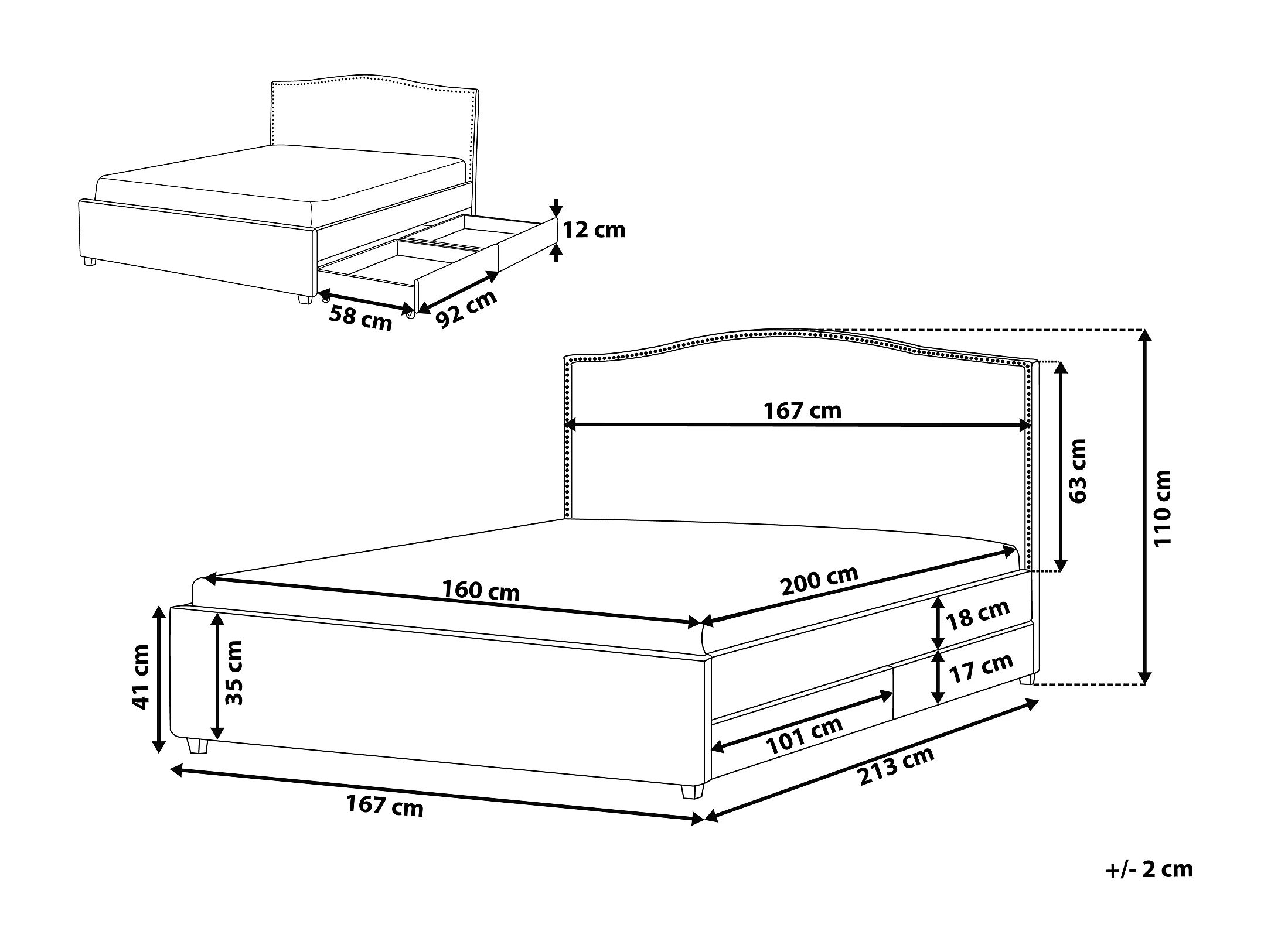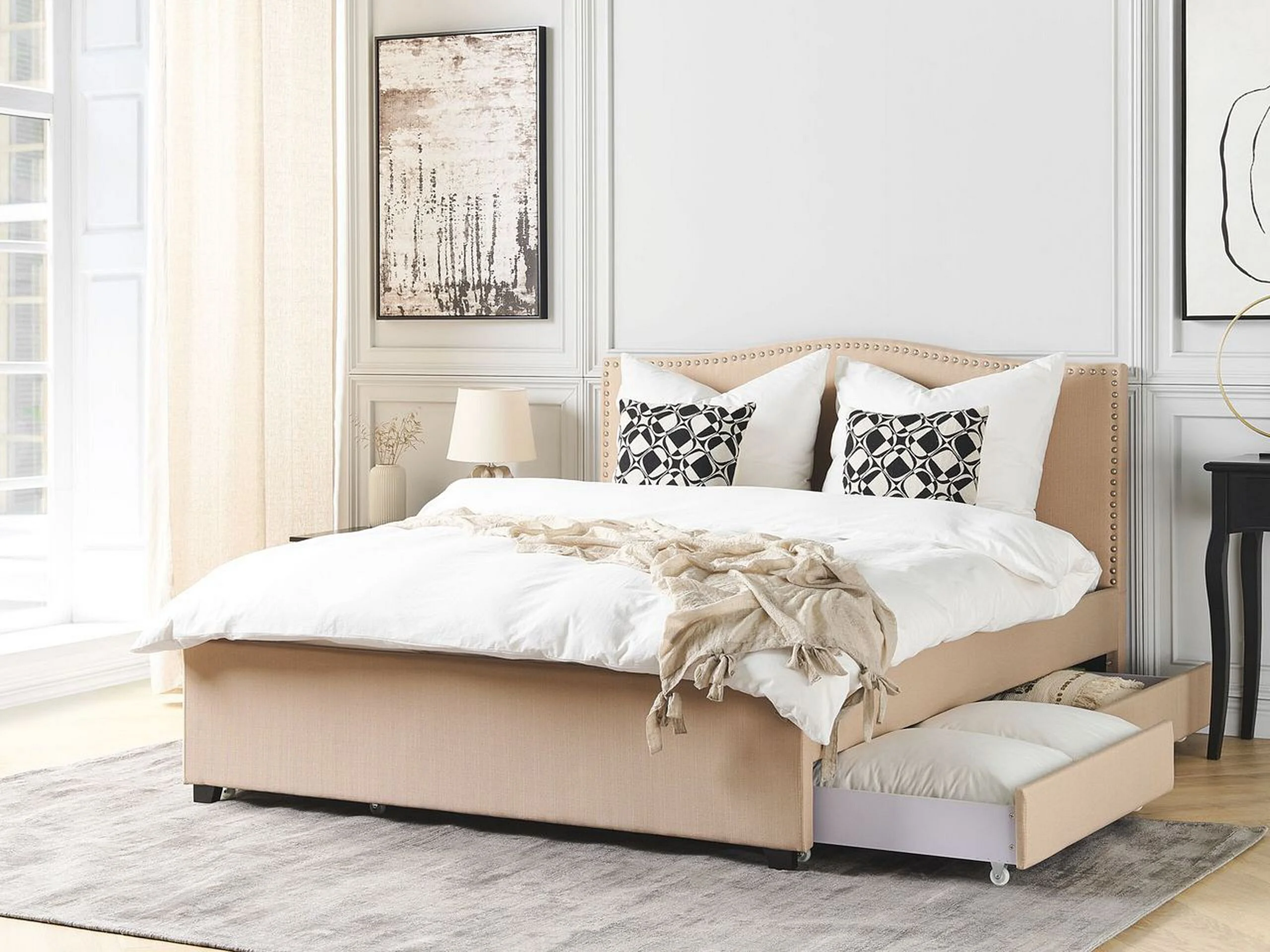 Lit avec tiroirs de rangement Tissu MONTPELLIER 160 x 200 cm Beige