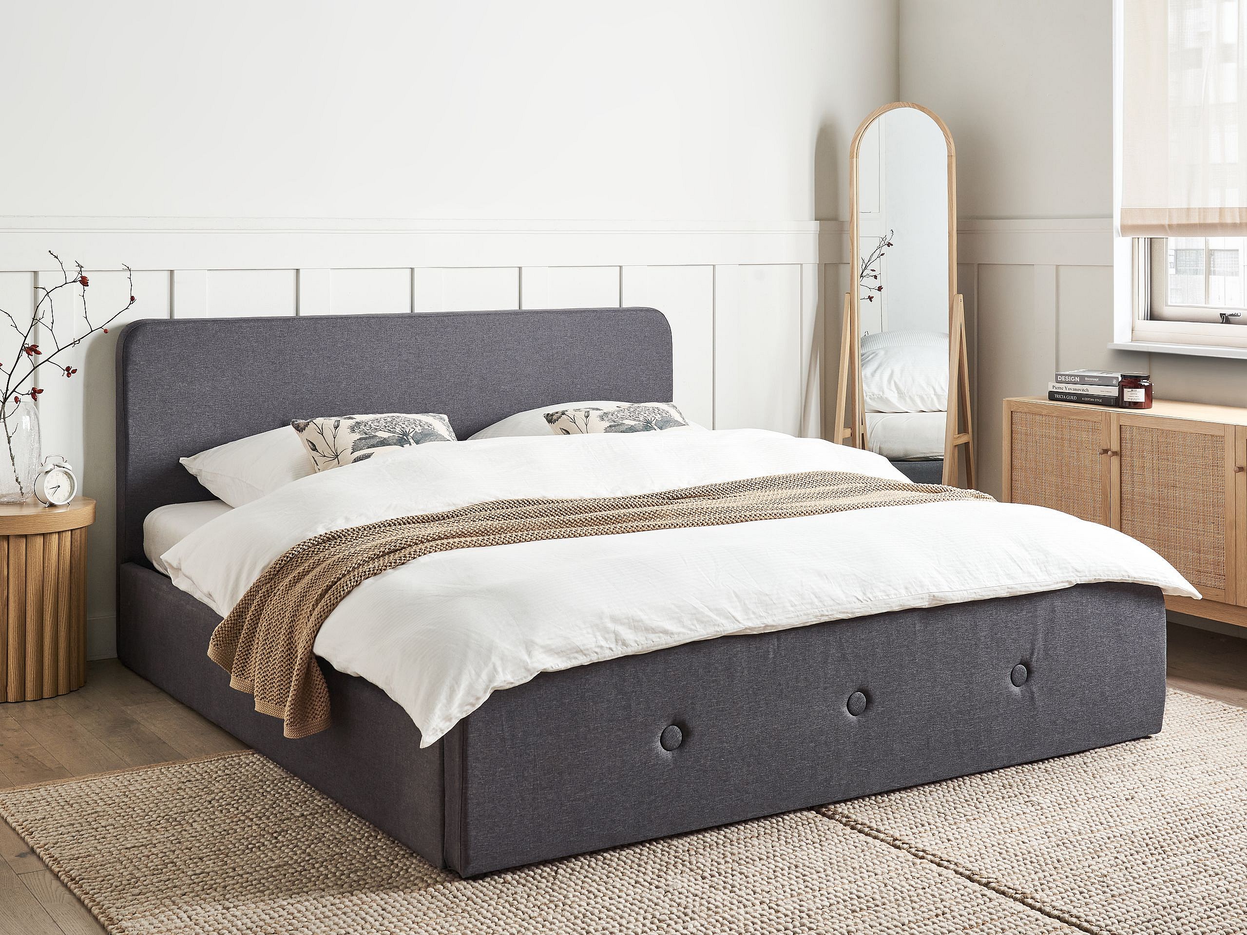 Lit ottoman Tissu RENNES 180 x 200 cm Gris foncé