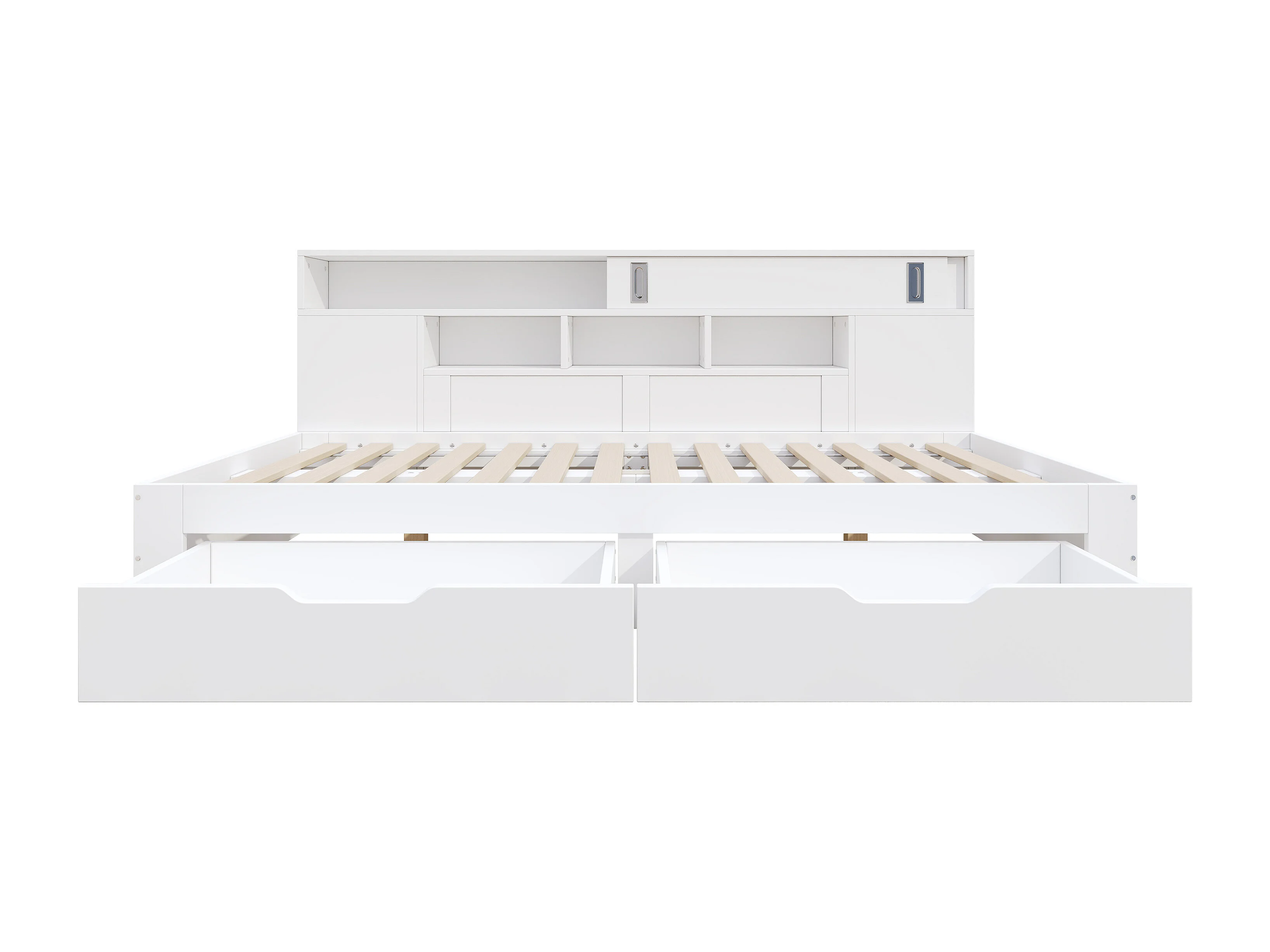 Lit enfant 135x190 cm - avec 2 tiroirs - Étagères latérales réglables - MDF - Blanc (sans matelas)