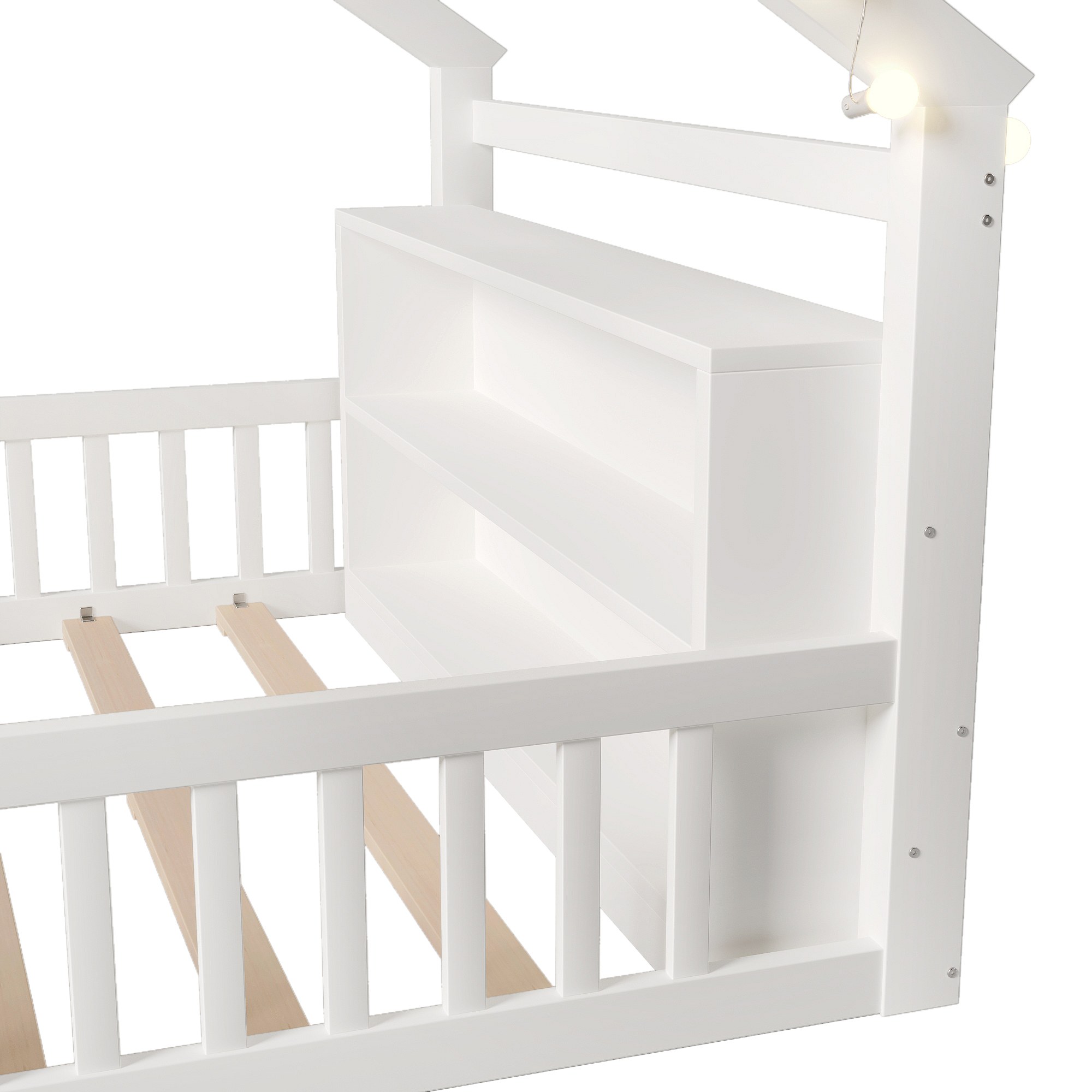 Lit cabane pour enfant 140x200 cm - en forme de maison - en bois de pin et MDF - Blanc