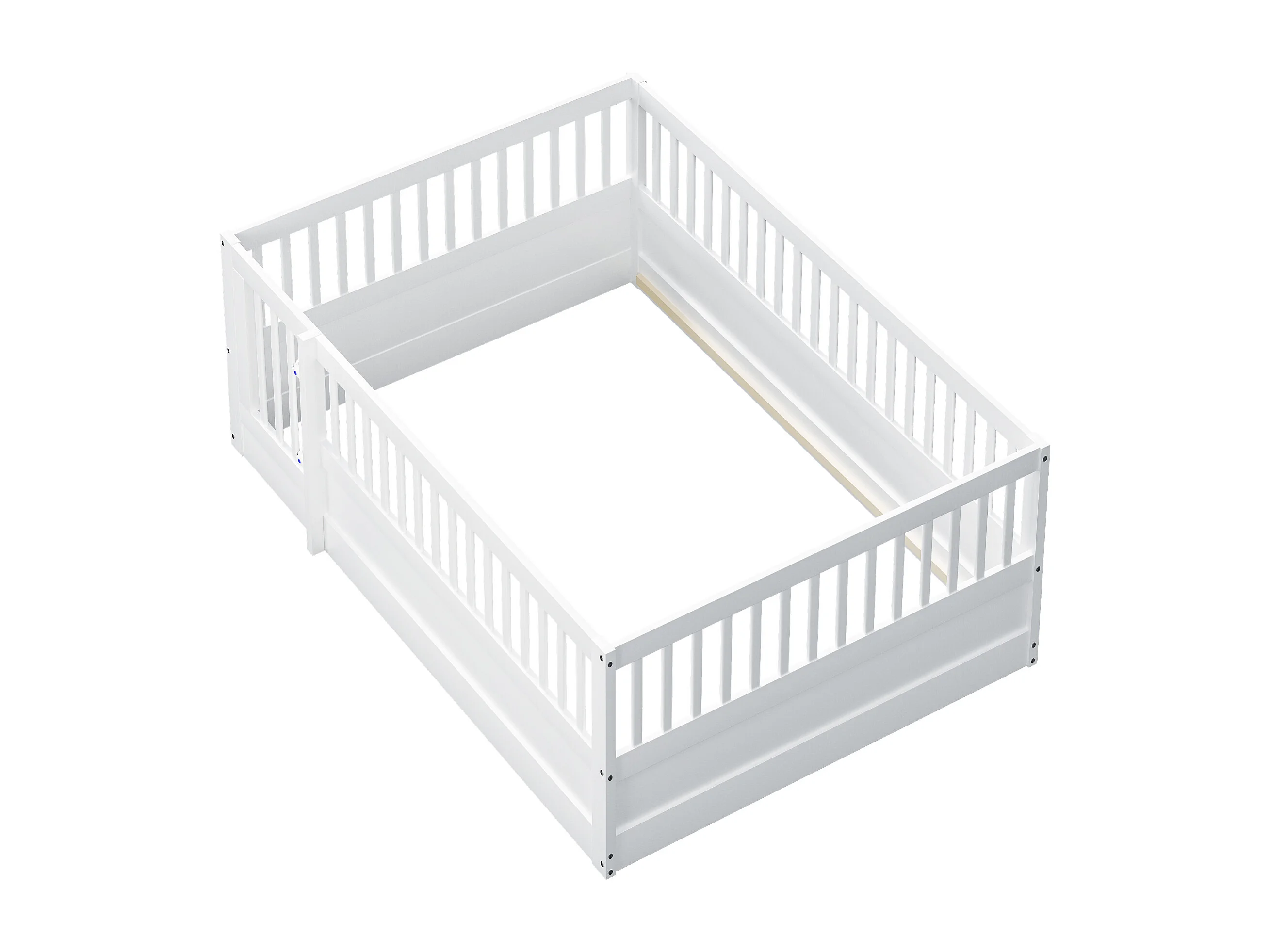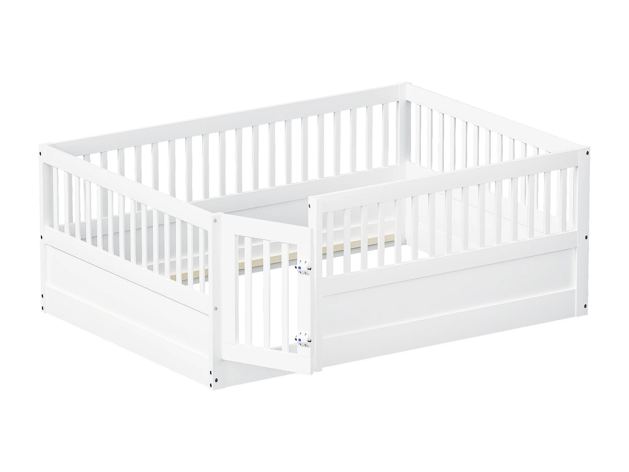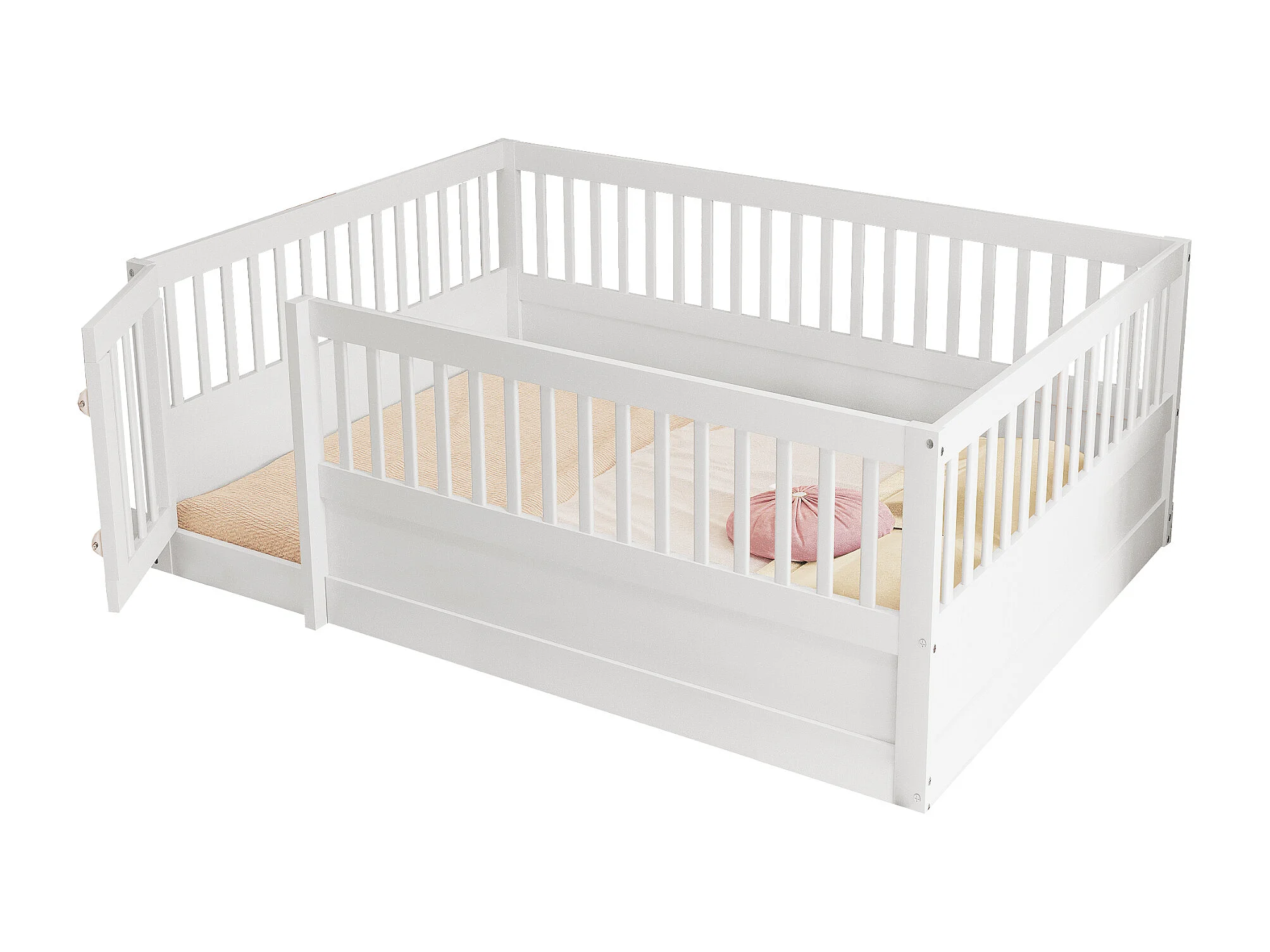Lit enfant 140x200 cm en bois avec barrière et porte, simple et pratique, blanc