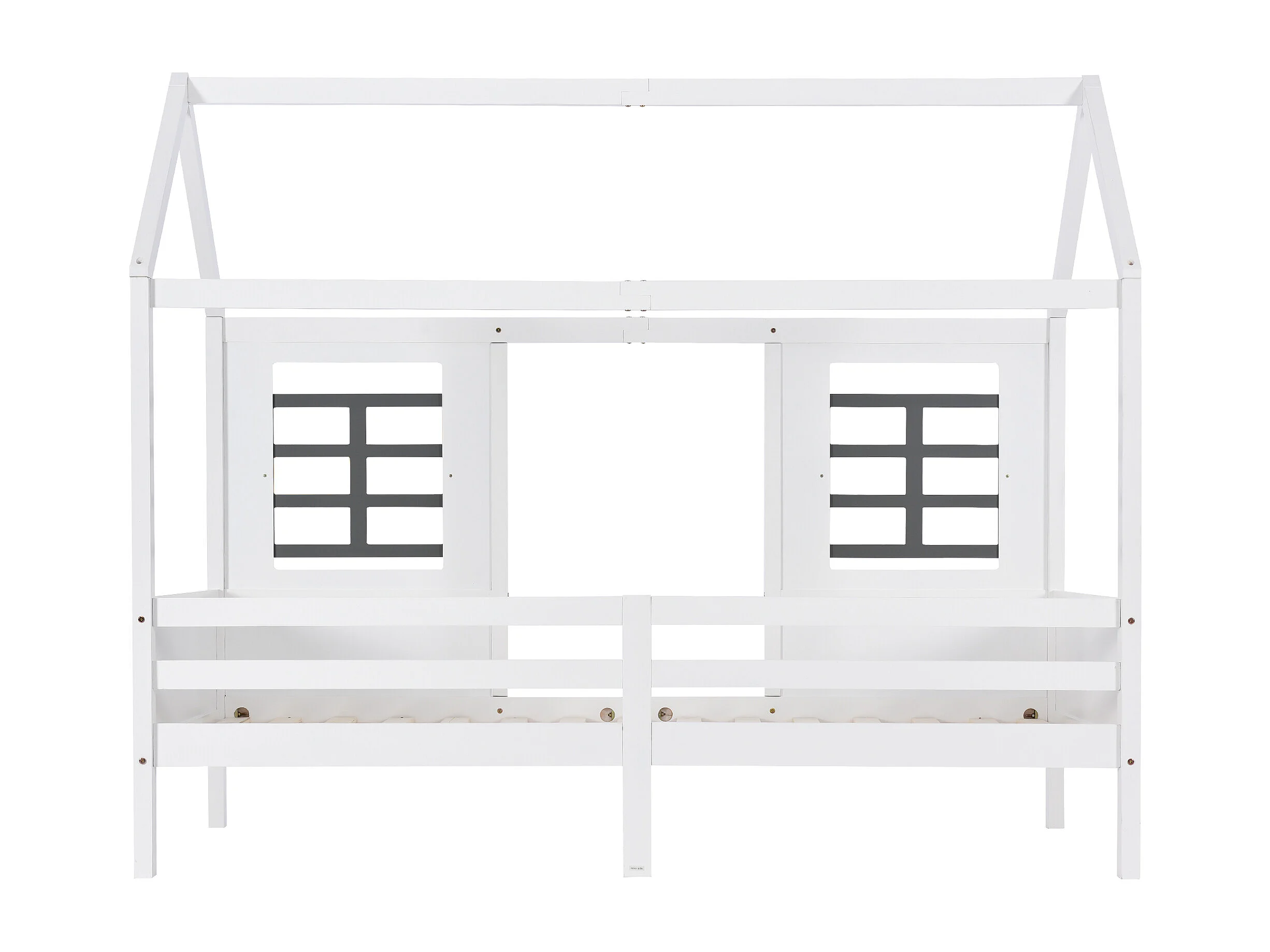 Lit enfant 207x97x174 cm avec deux fenêtres cadre en pin Matériaux MDF en blanc pour enfants et adolescents