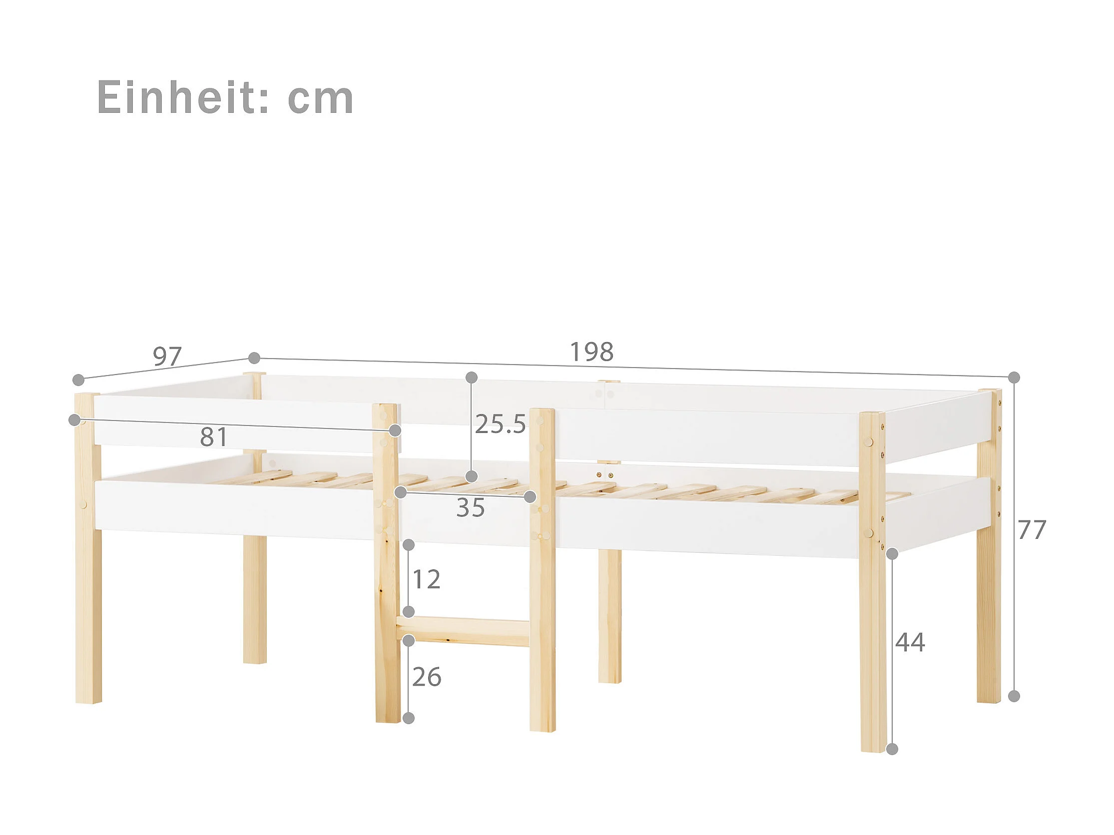 Lit enfant 90x190cm avec protection anti-chute - sommier à lattes en bois - blanc (sans matelas)