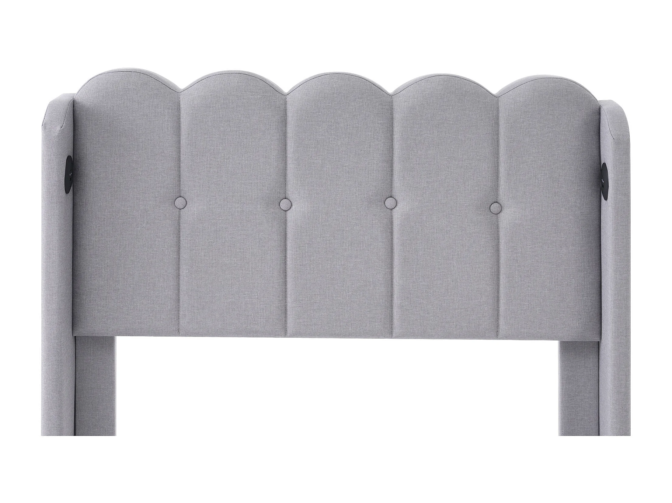 Lit enfant 90x200 cm avec sommier - tête de lit capitonnée avec USB - cadre de lit en bois - lin gris (sans matelas)