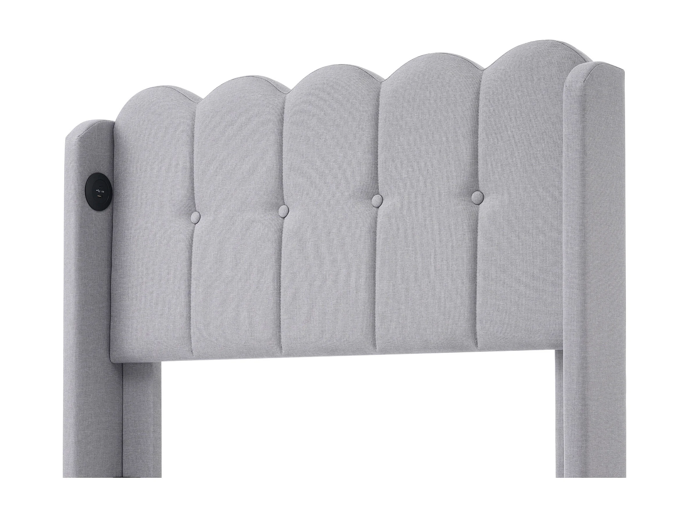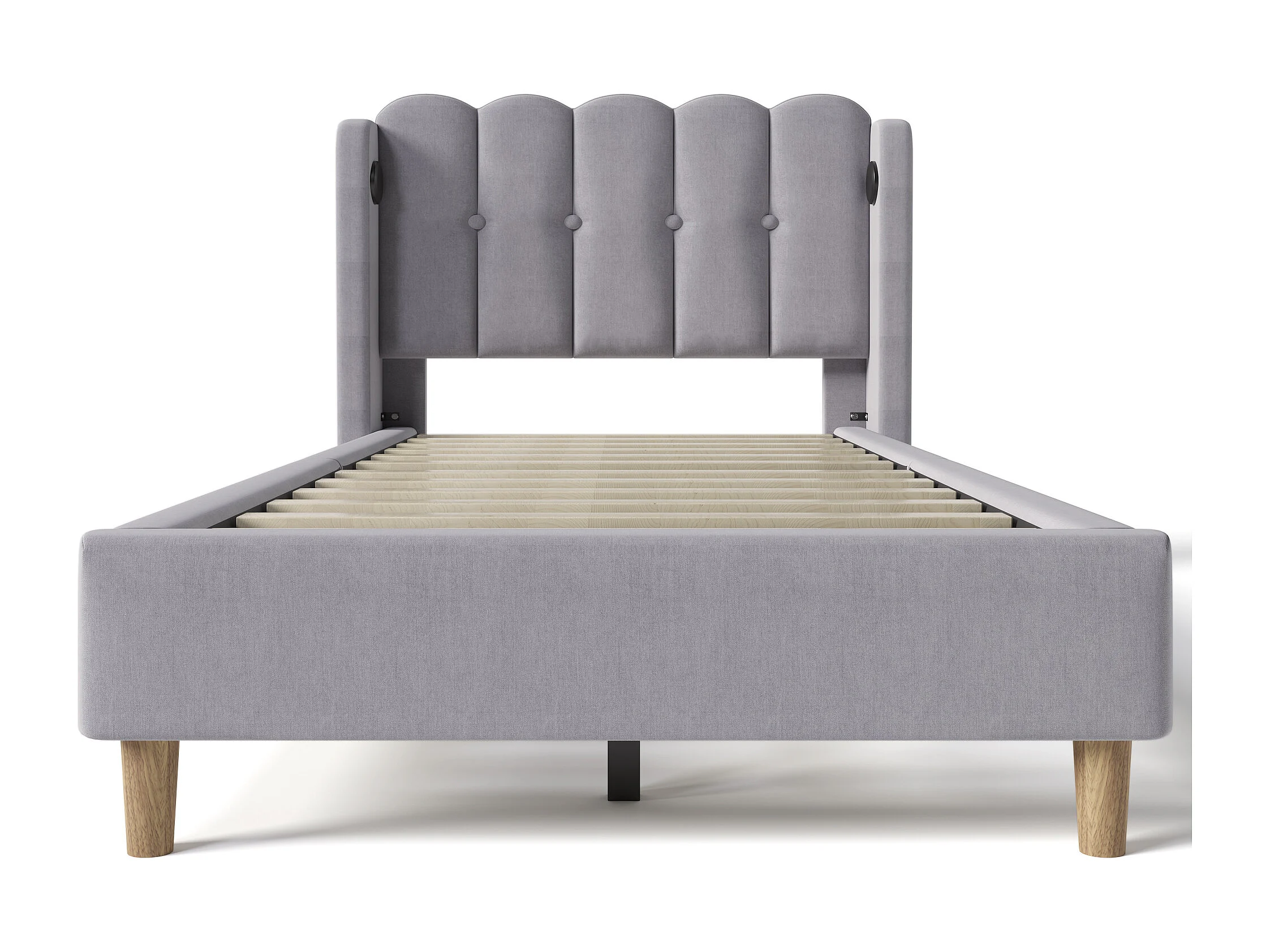 Lit simple 100x200 cm, tête de lit à panneaux avec ports USB et Type C, sommier à lattes, lin gris(Sans matelas)