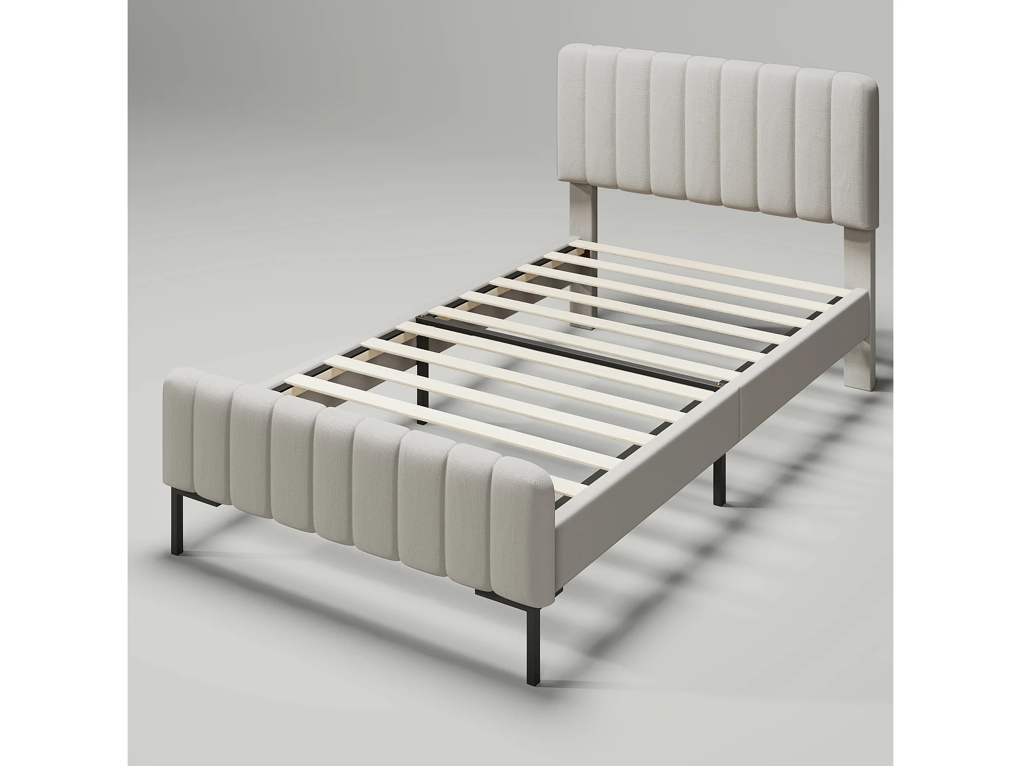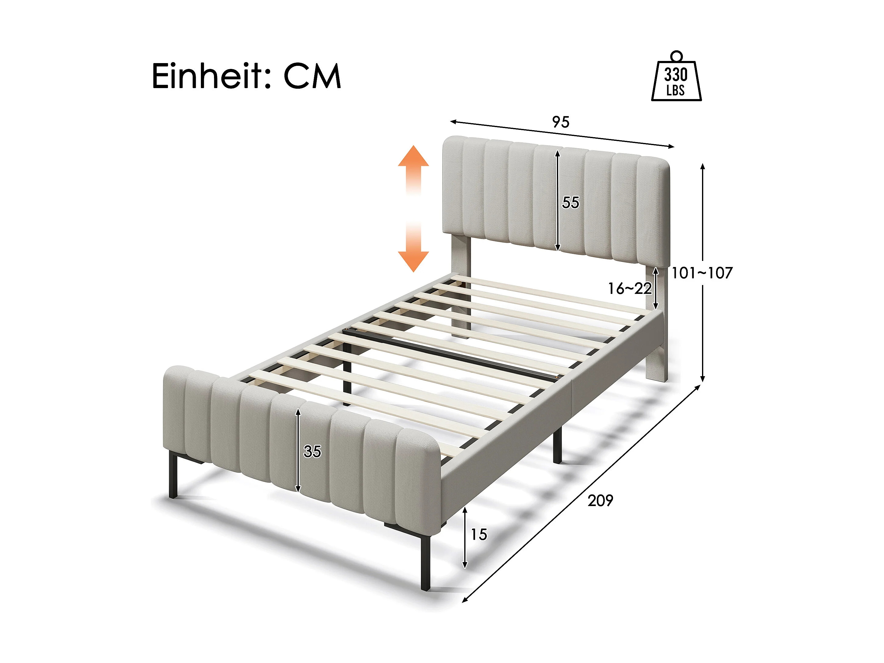 Lit enfant 90x200 cm avec sommier -tête de lit réglable en hauteur - lin beige (sans matelas)