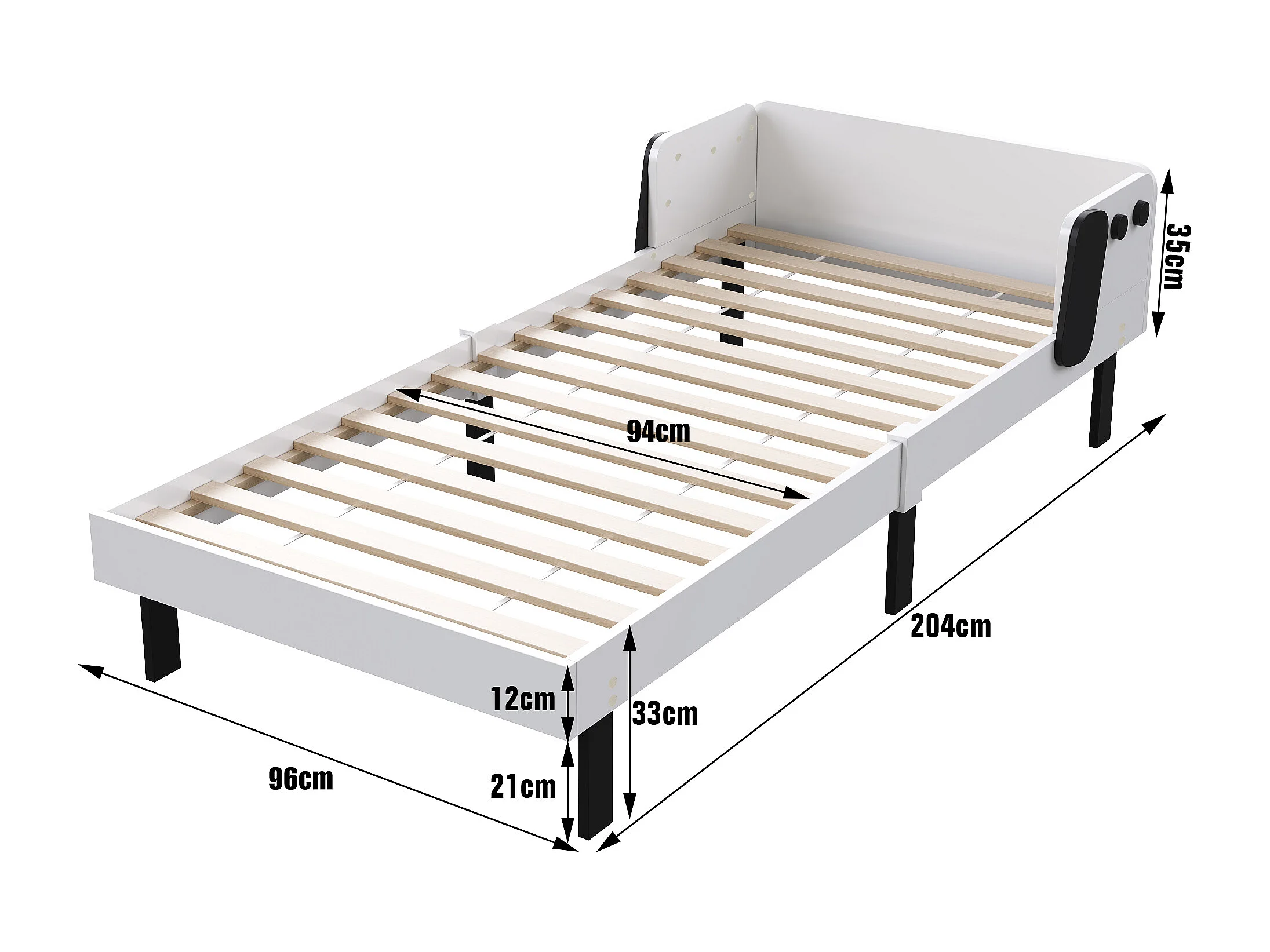 Lit simple 90 x 200 cm, en bois massif, avec sommier à lattes, style chiot, rembourré, pour chambre d'enfant, garçon et fille, sans matelas, Blanc