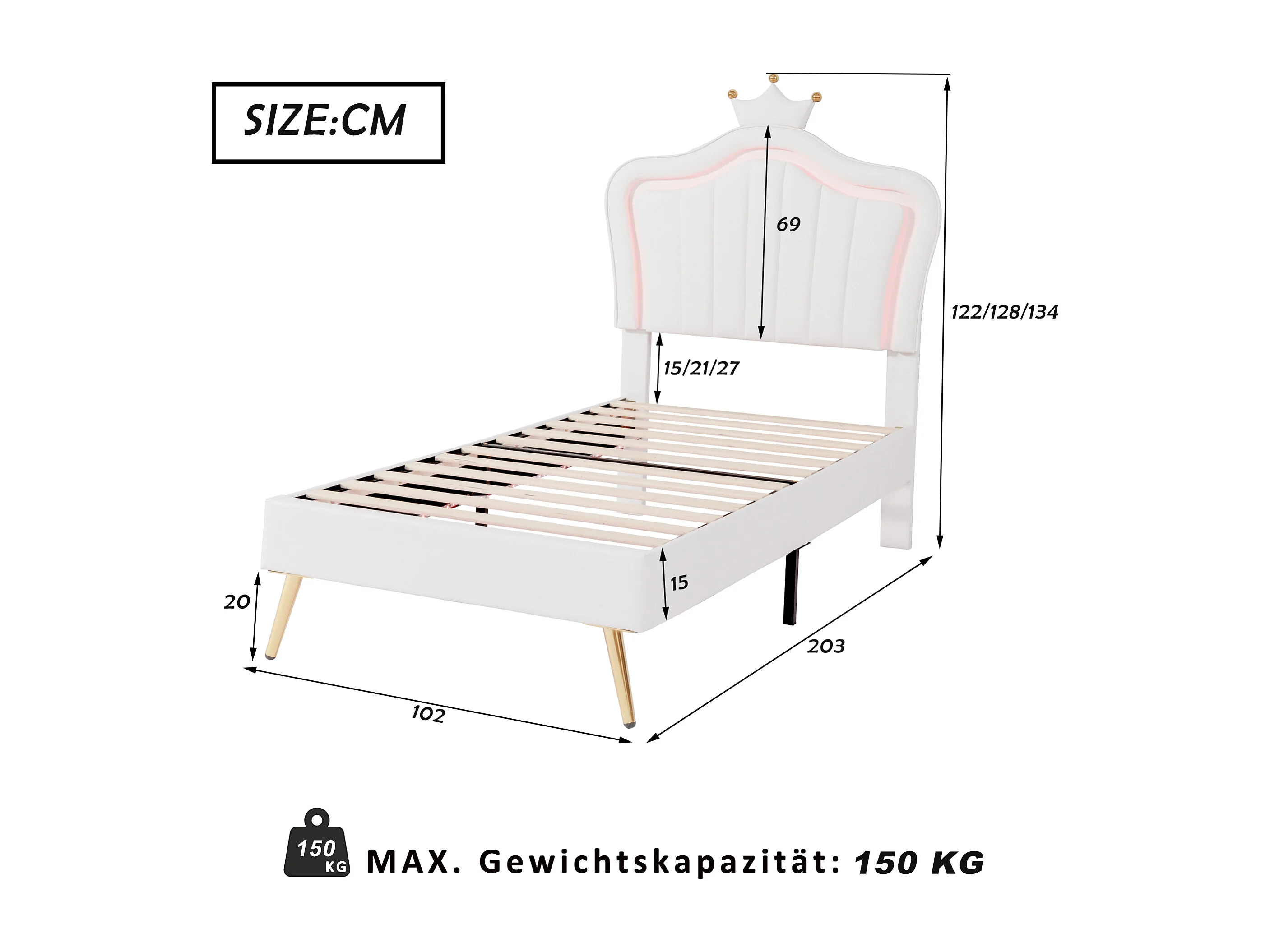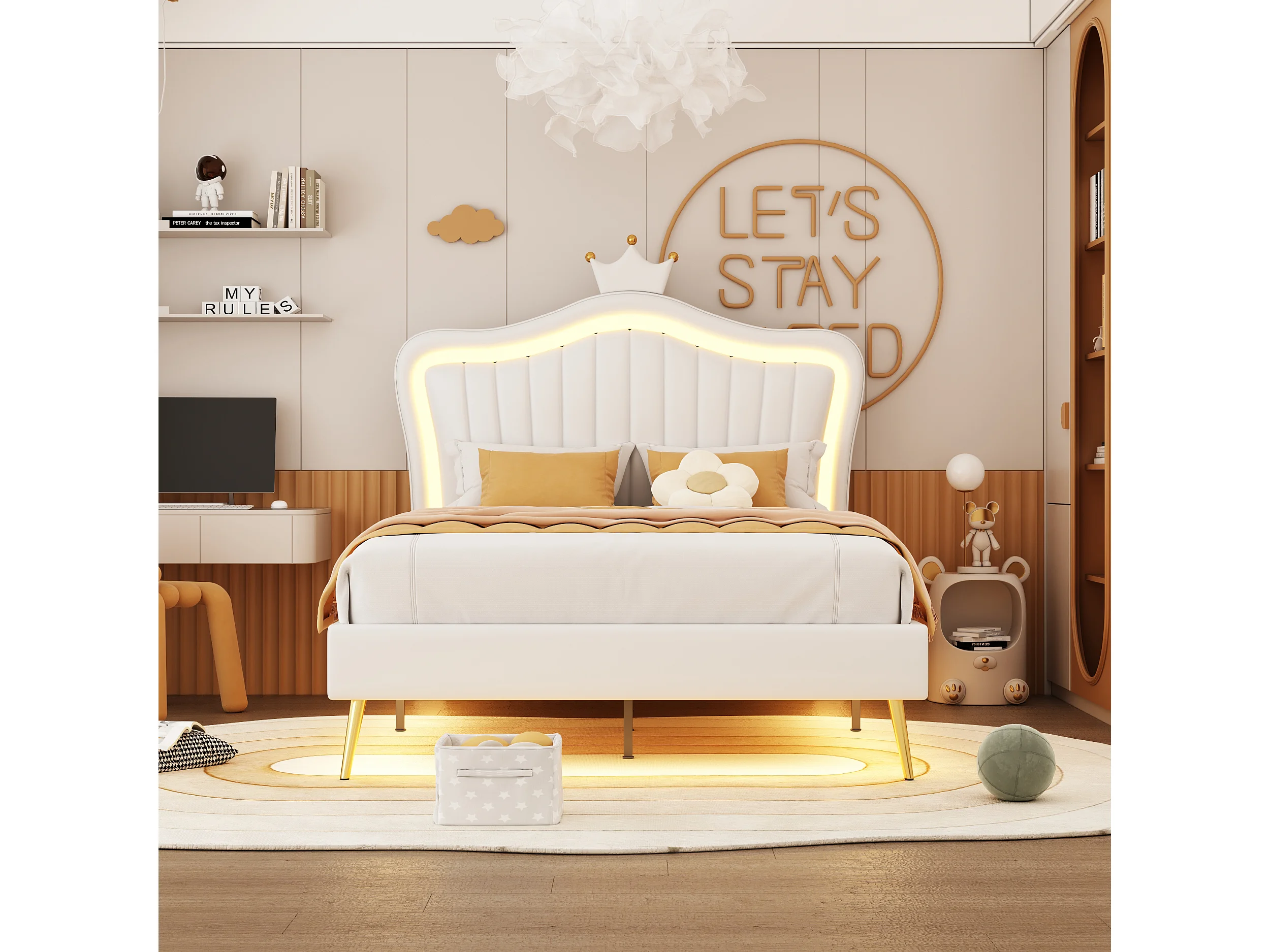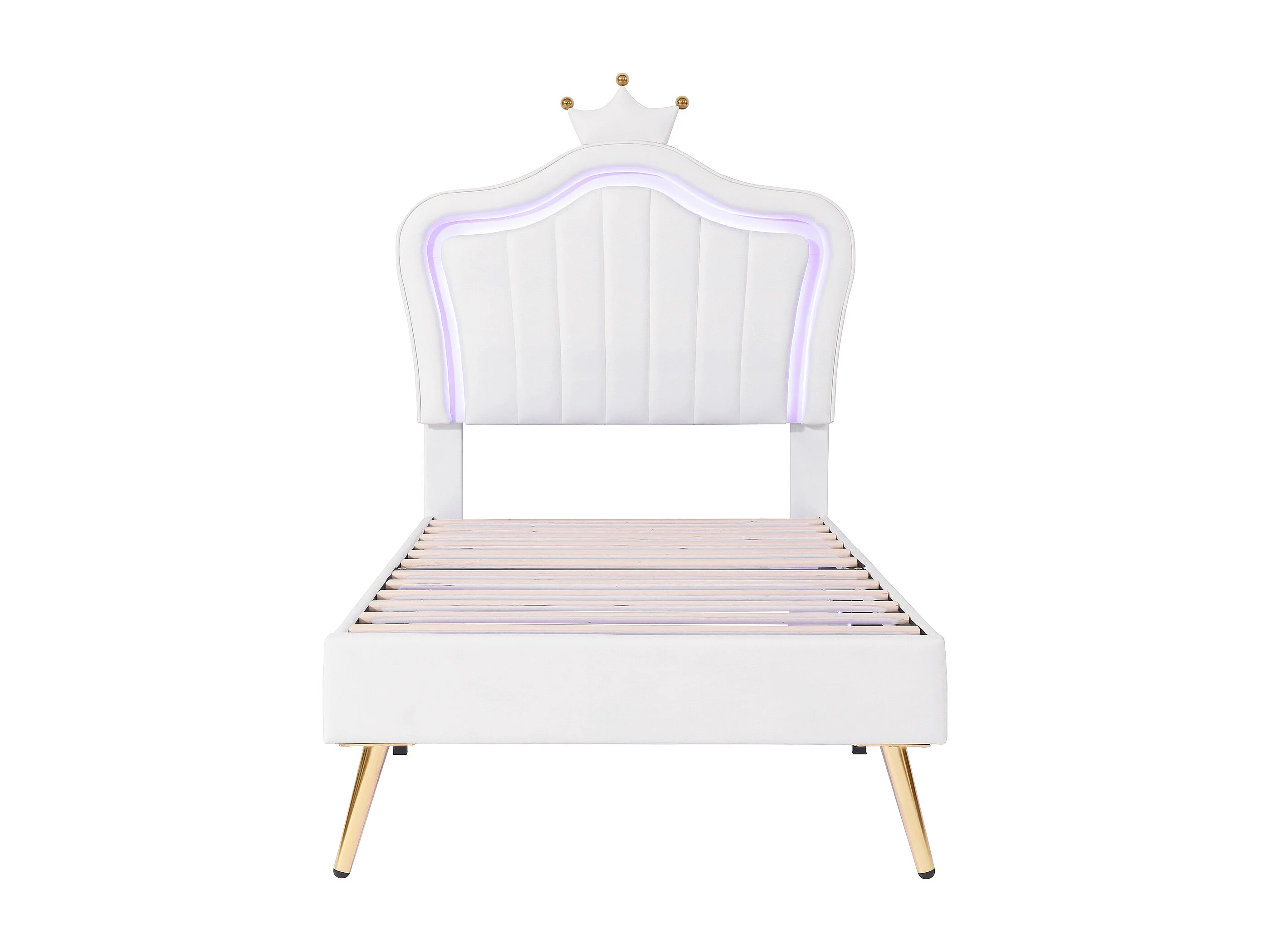 Lit enfant 90x200 cm - Lit simple avec éclairage LED - PU blanc - Sans matelas