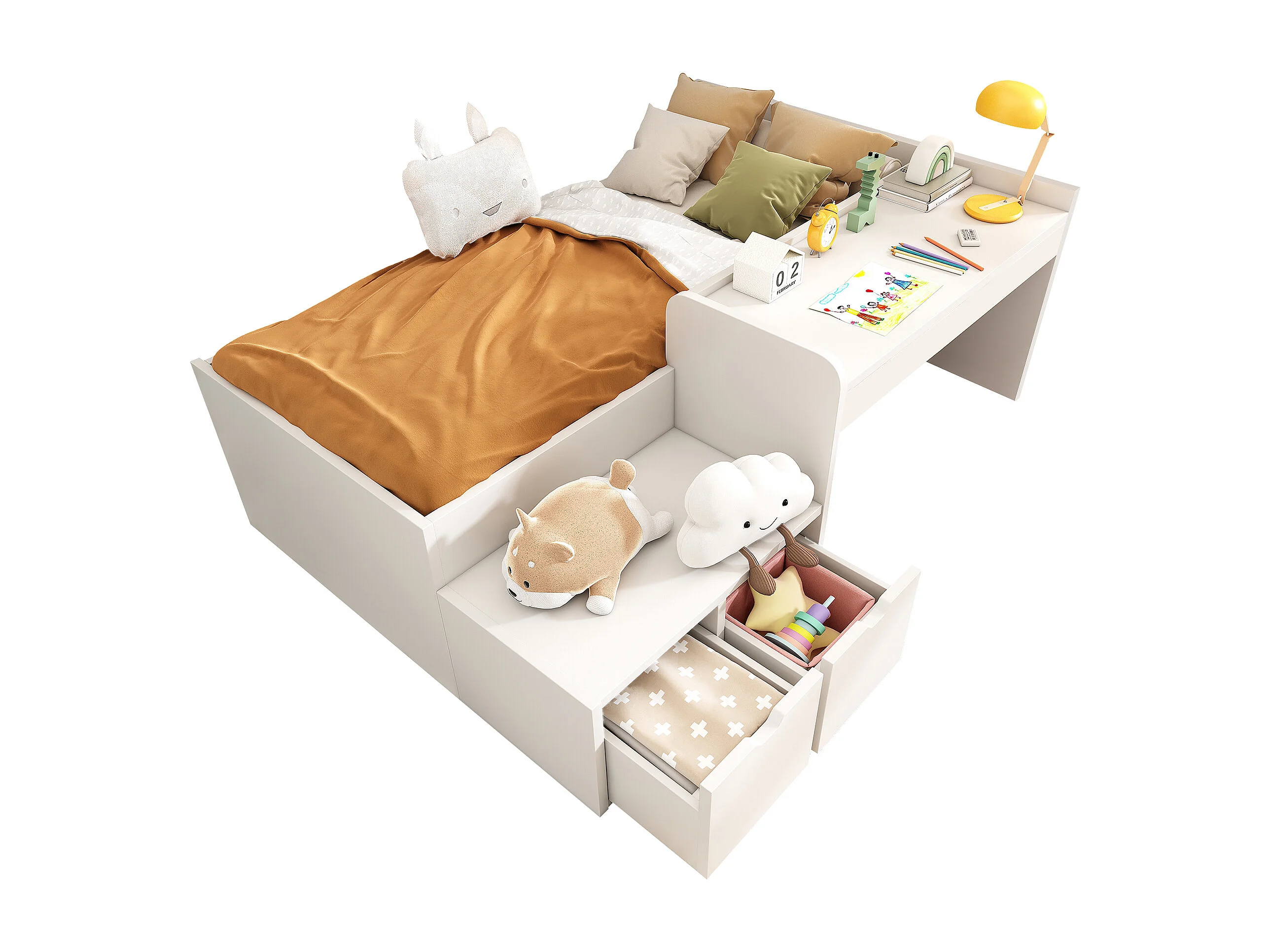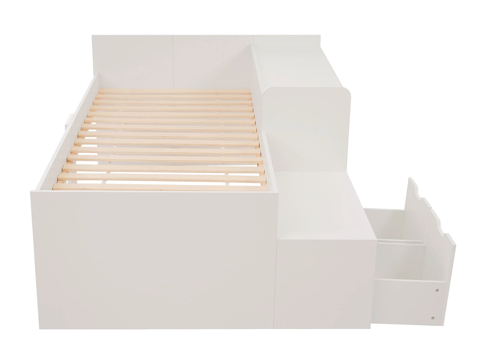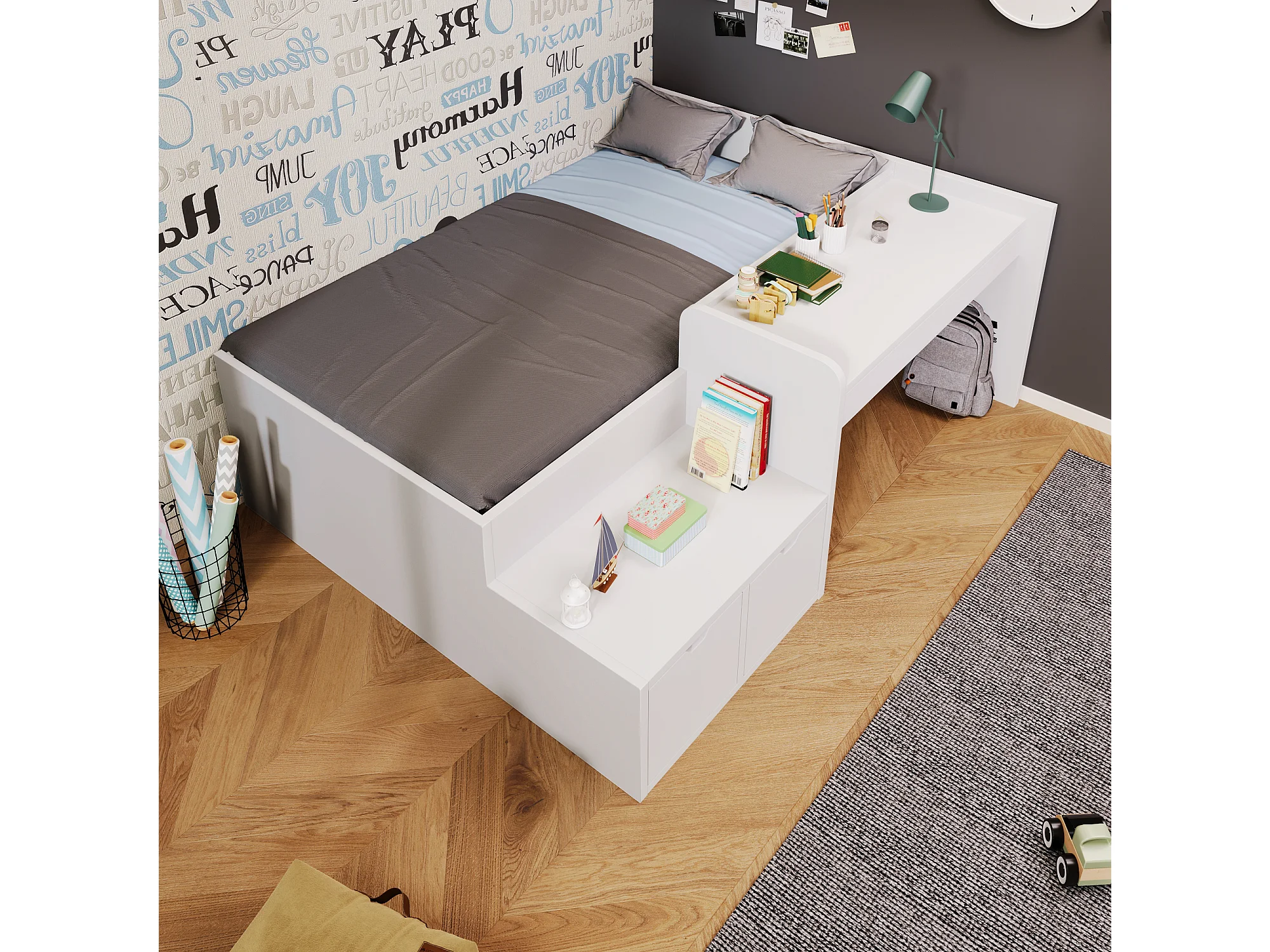 Lit enfant 90x200cm avec bureau et tiroirs Espace de rangement Tapis antidérapant en blanc pour enfant