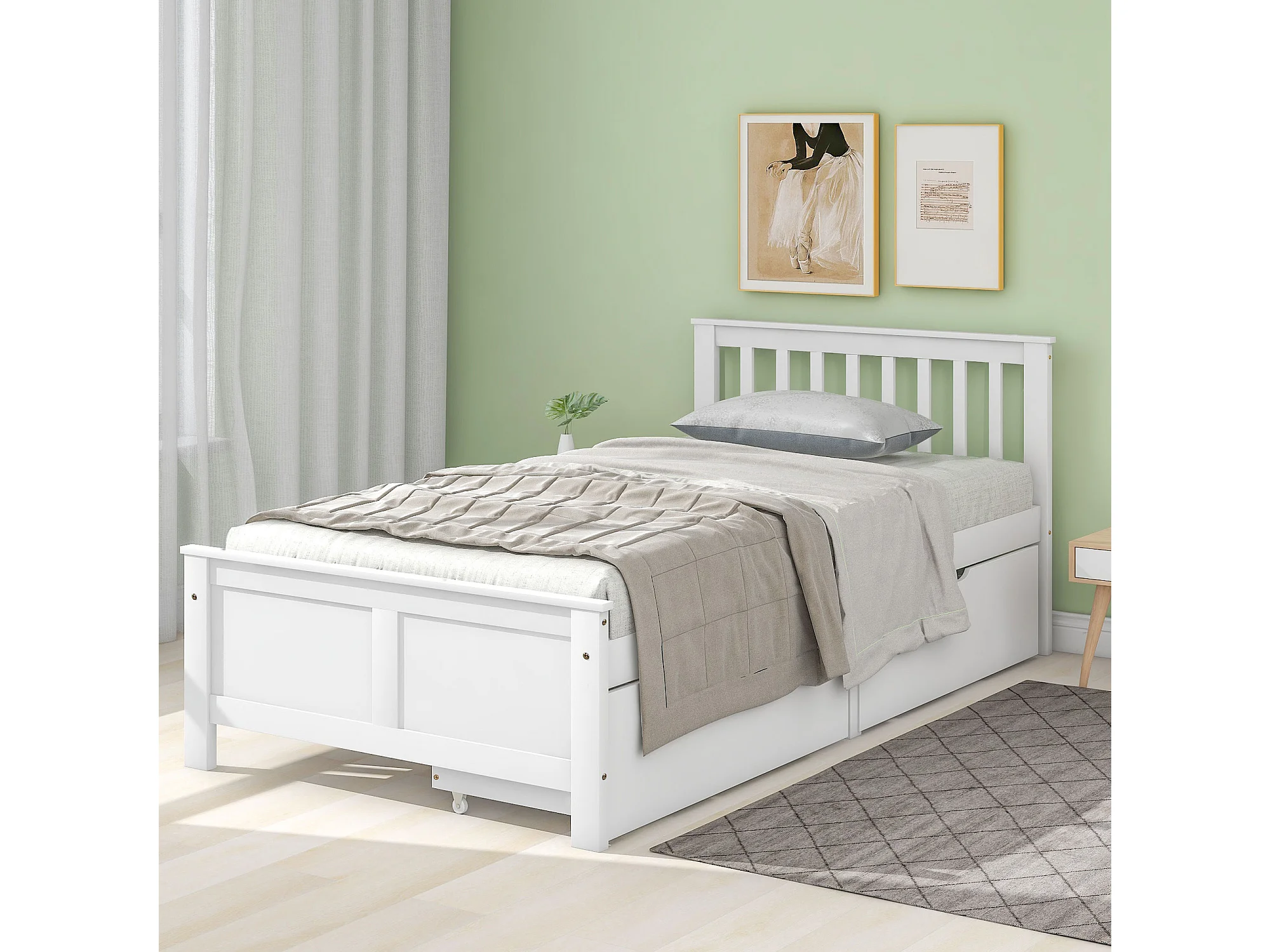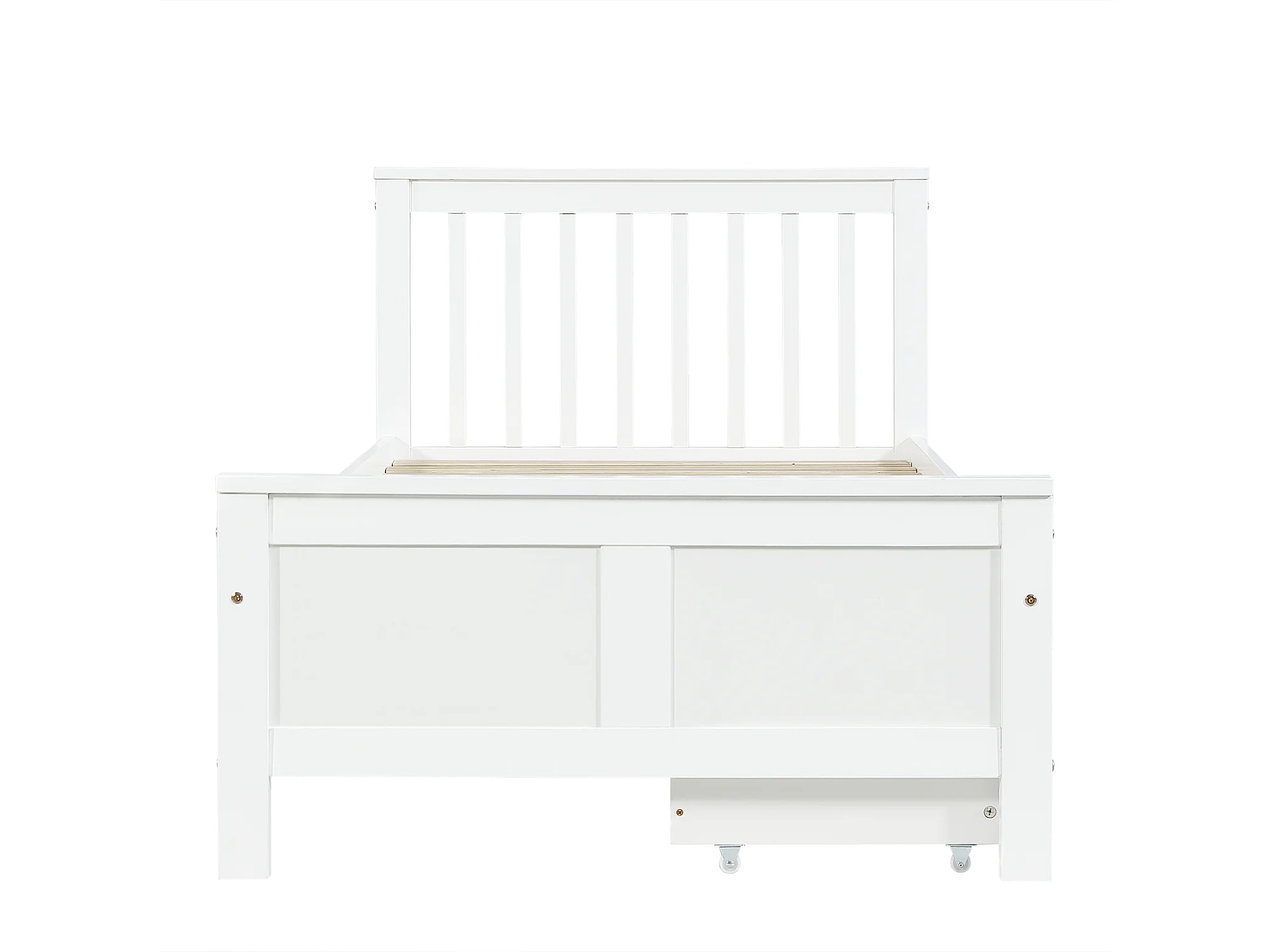 Lit enfant 90x200cm avec deux tiroirs cadre en pin Matériaux MDF en blanc pour enfants et adolescents